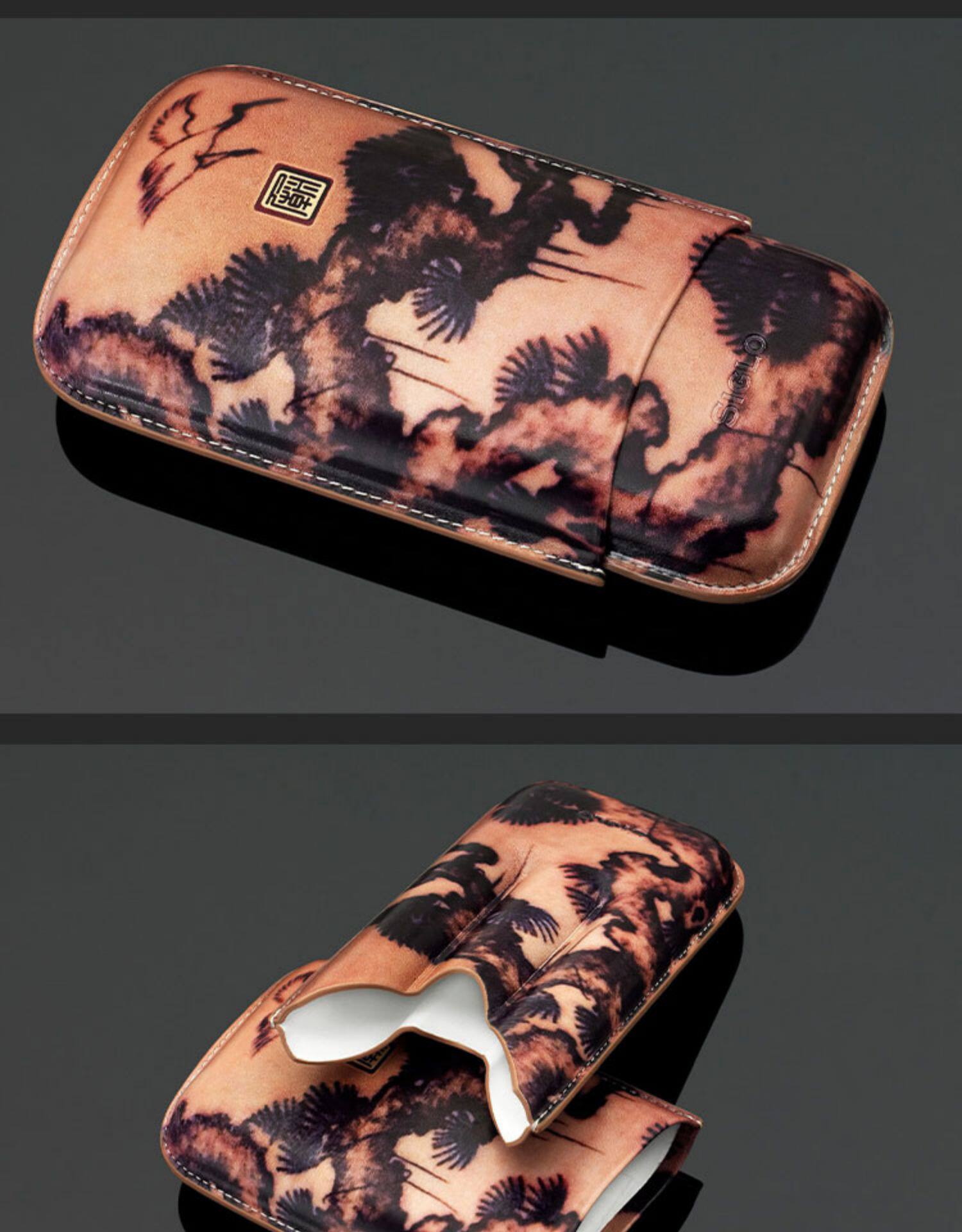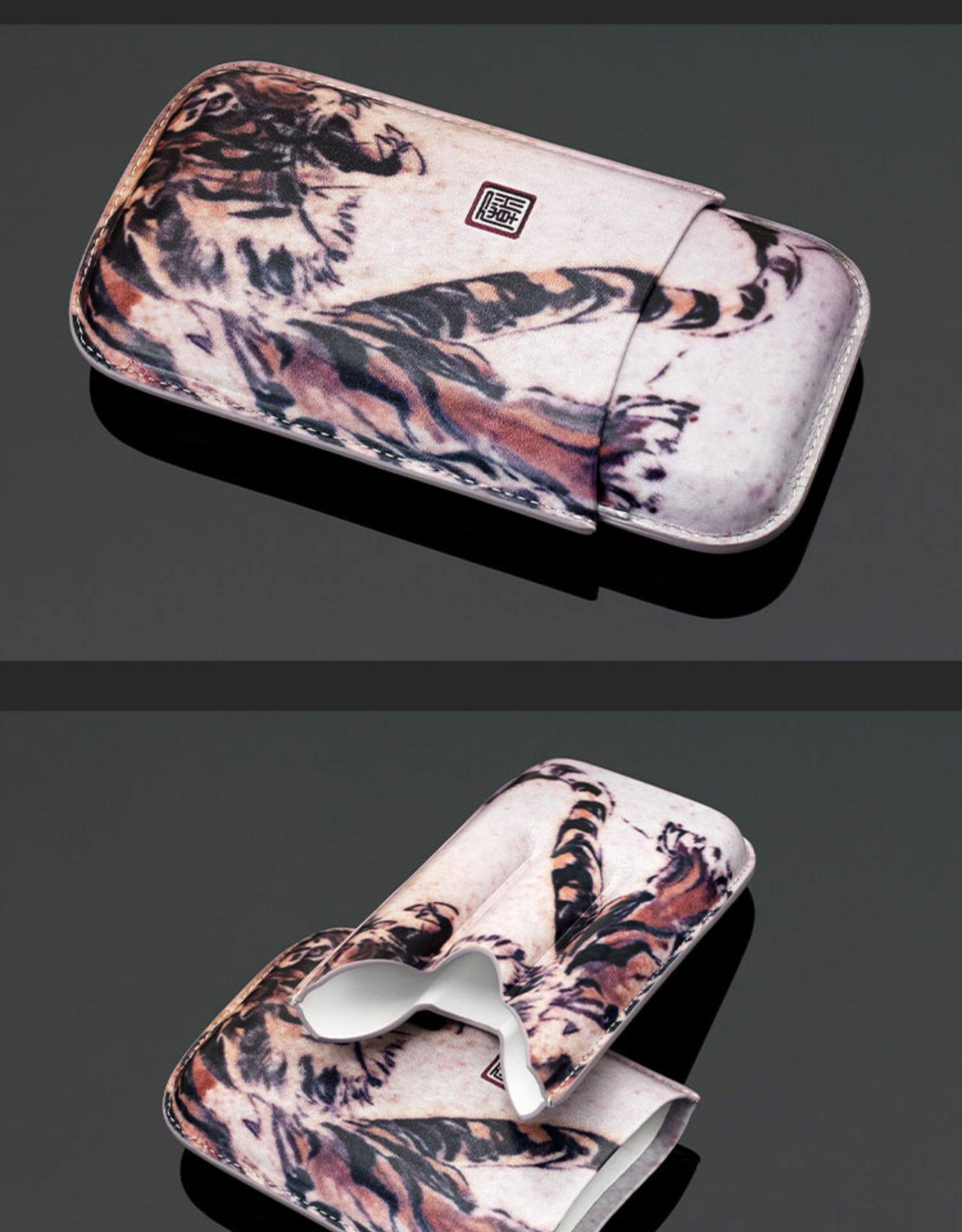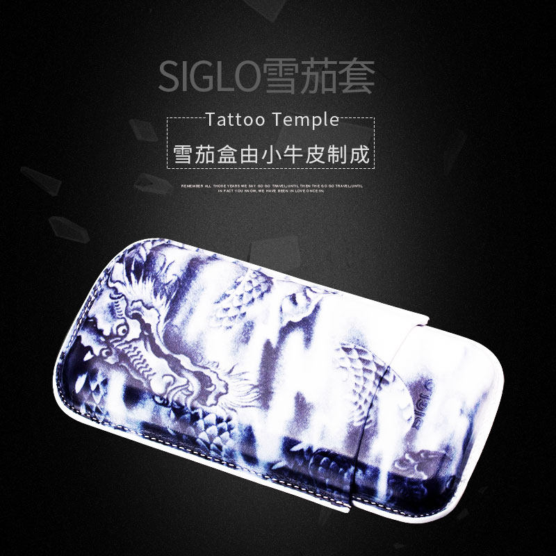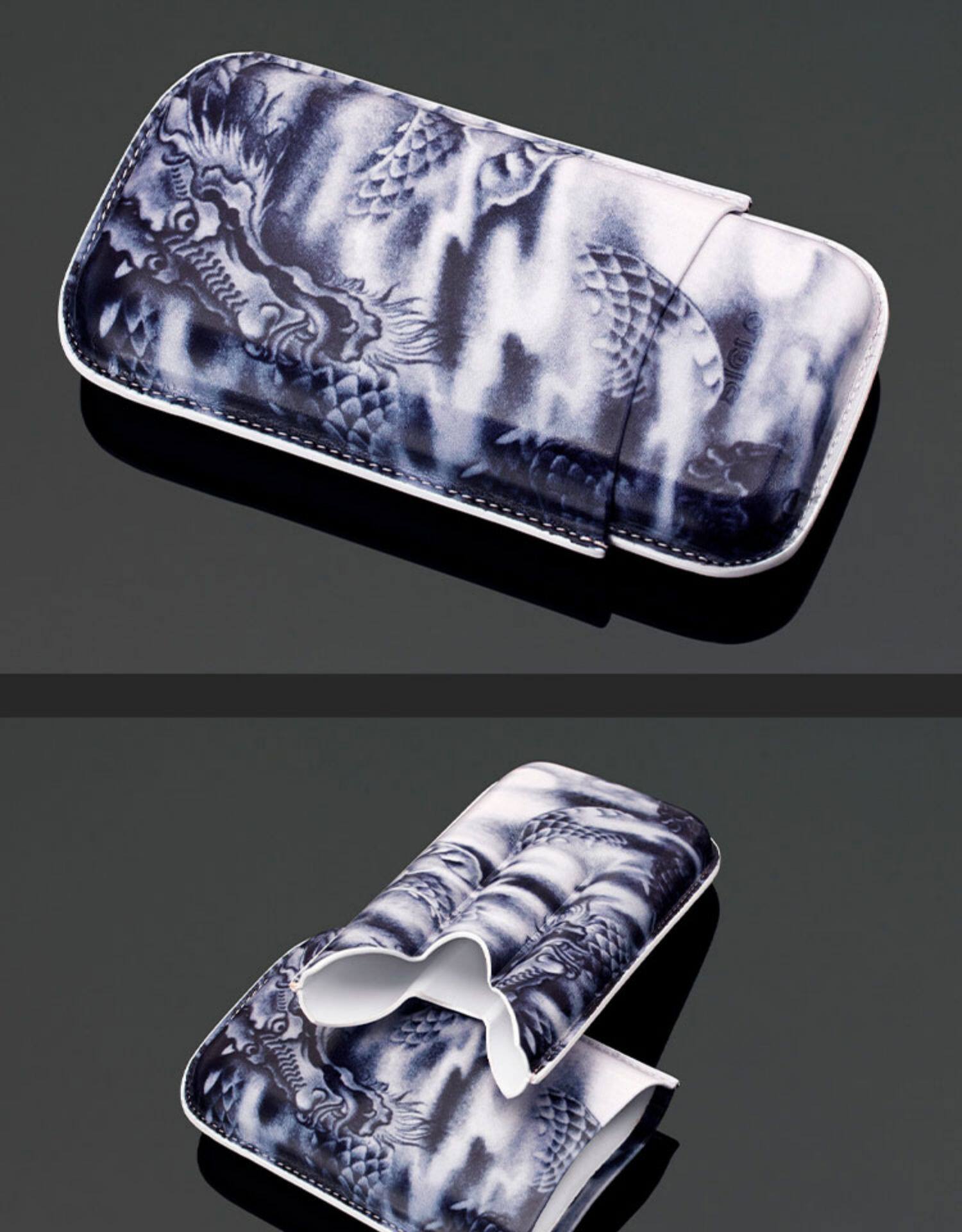 Сигарная кожаная корпуса сигар, портативная сигарная сигарная сигара сигара увлажняющая коробка кожаная татуировка синий узор