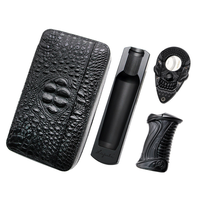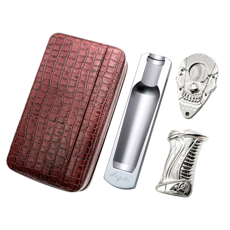 Кожаная портативная пепельница, зажигалка, комплект, подарочная коробка, воловья кожа