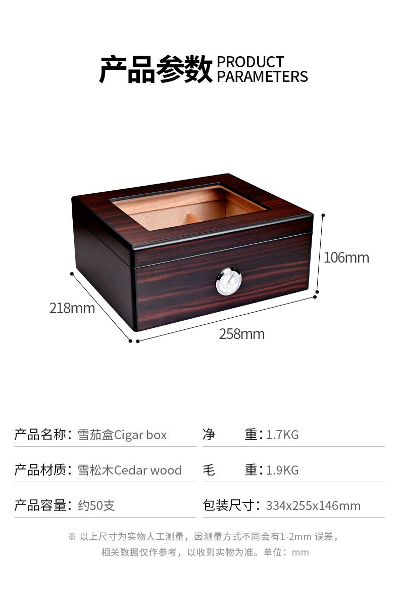 Сигарлуонг-сигарная коробка кедровая деревянная сигаретная коробка прозрачная сигарная увлажняющая коробка