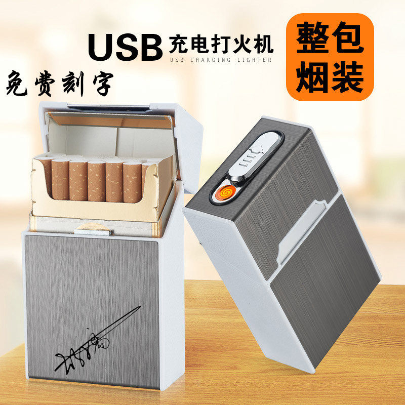 Портсигар, портативная универсальная ультратонкая зажигалка с usb-зарядкой, 20 шт, полностью автоматический