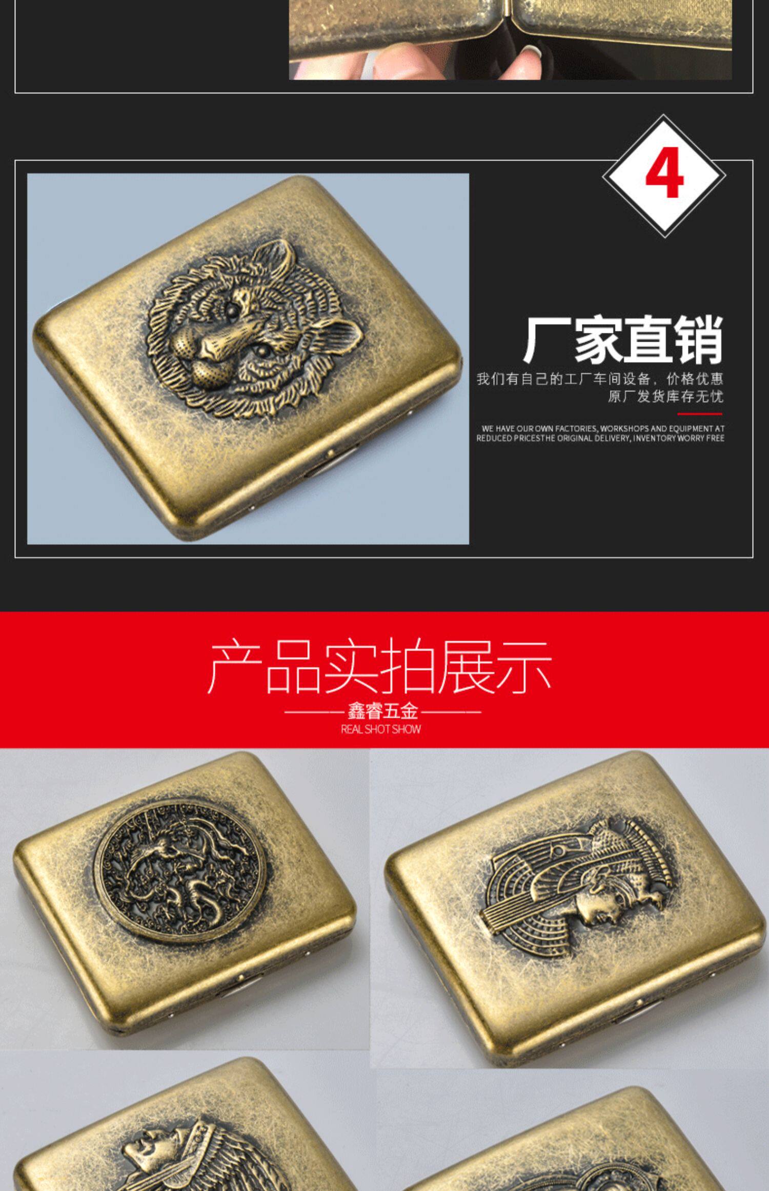 Оригинальный трехмерный бронзовый медный ретро портативный портсигар из нержавеющей стали, 20 шт
