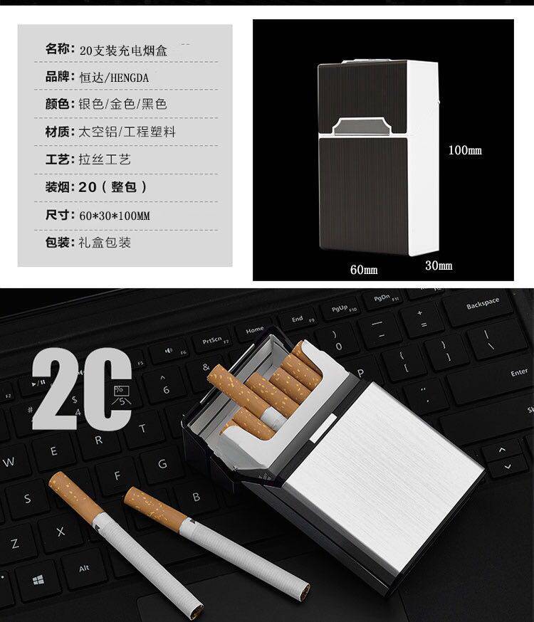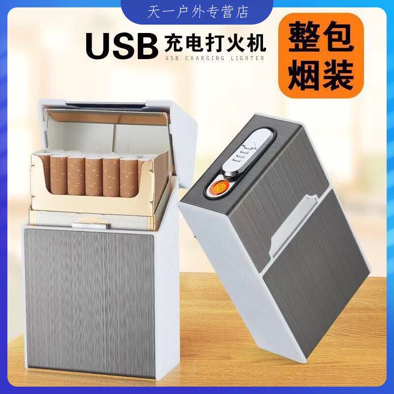 Портсигар с usb-зарядкой, электронная ветрозащитная зажигалка, 20 шт