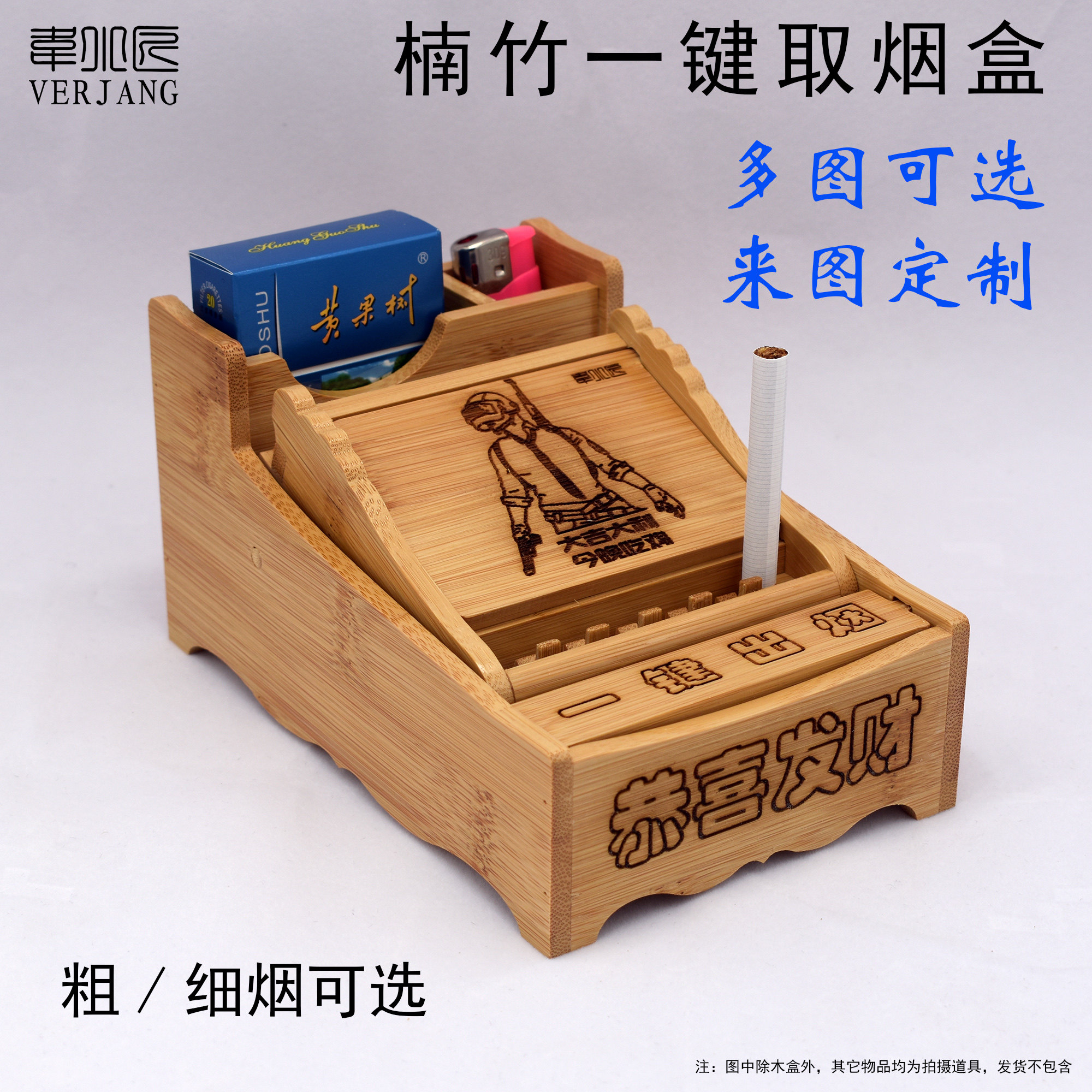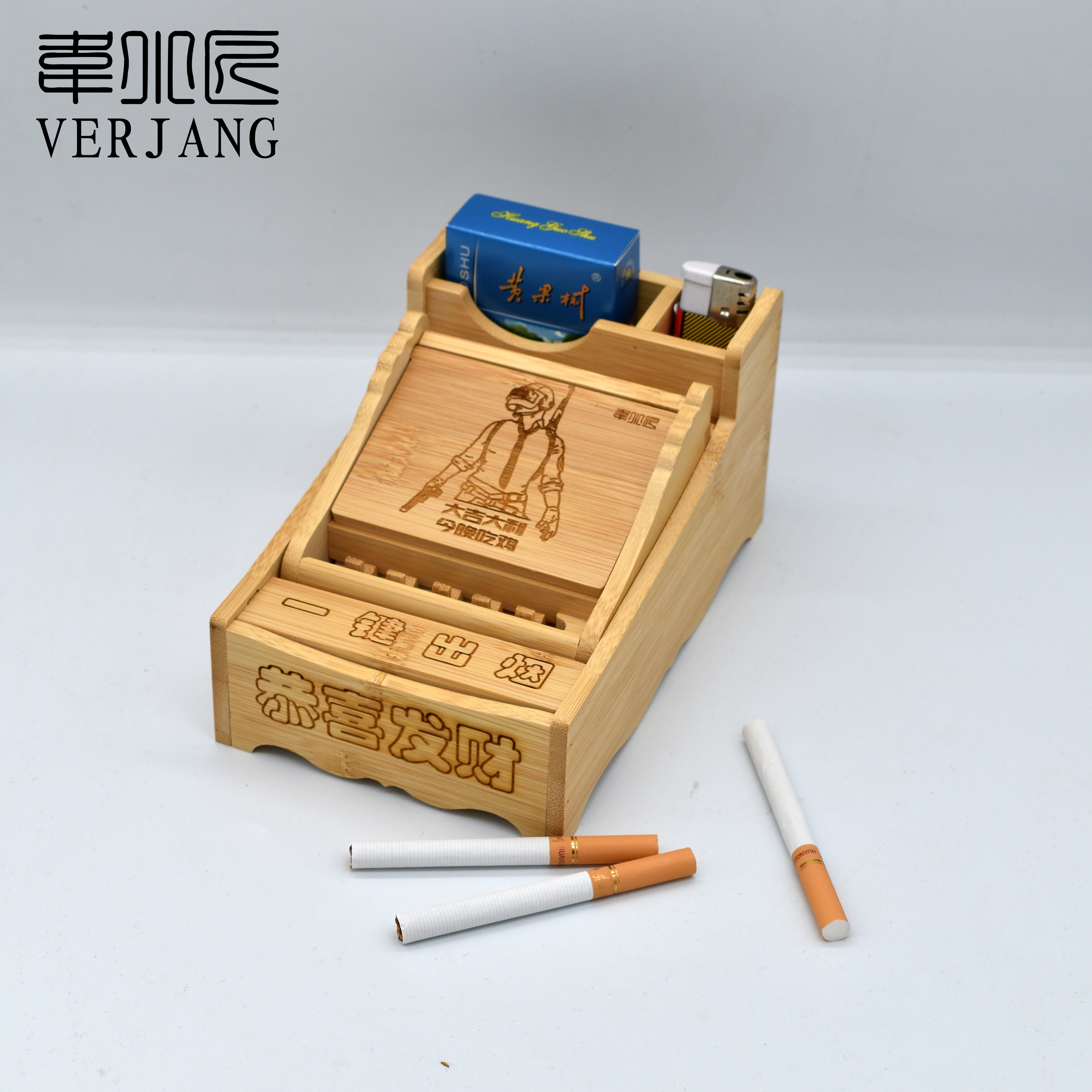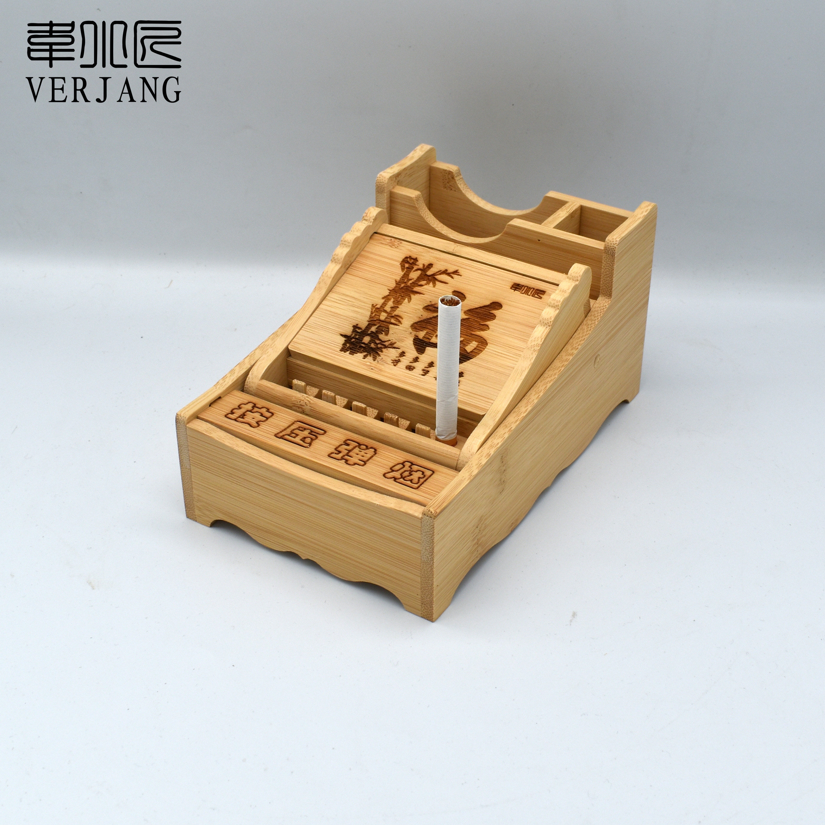 VERJANG Creative Nan Bamboo Wood One Click Sigarette Sciper Полуавтоматическая сигаретная коробка бамбука бамбука