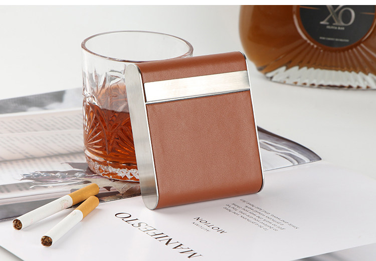Высококлассный модный металлический кожаный трендовый портативный портсигар подходит для мужчин и женщин, 20 шт