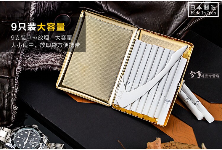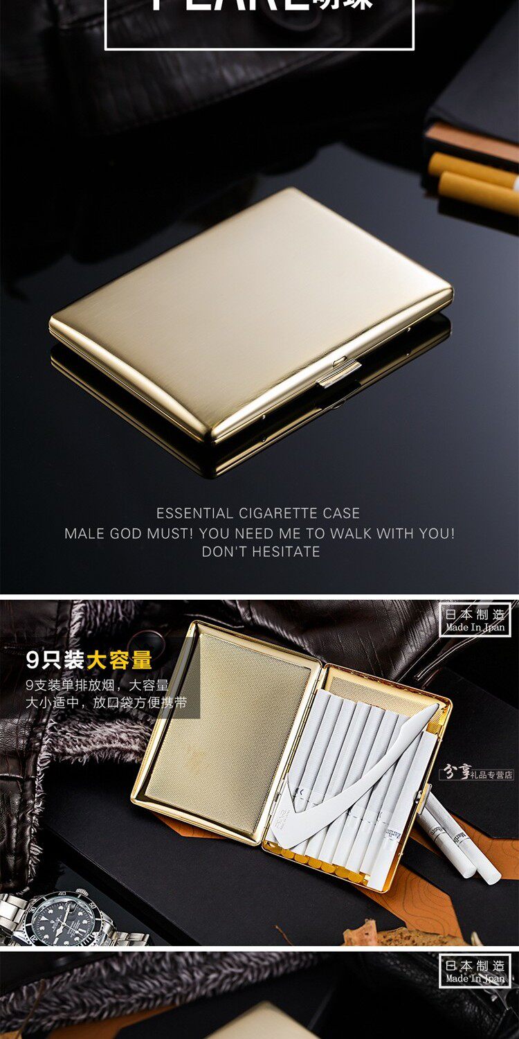 Японский оригинальный импортный золотой длинный медный ультратонкий металлический портсигар из жемчуга, 9 шт