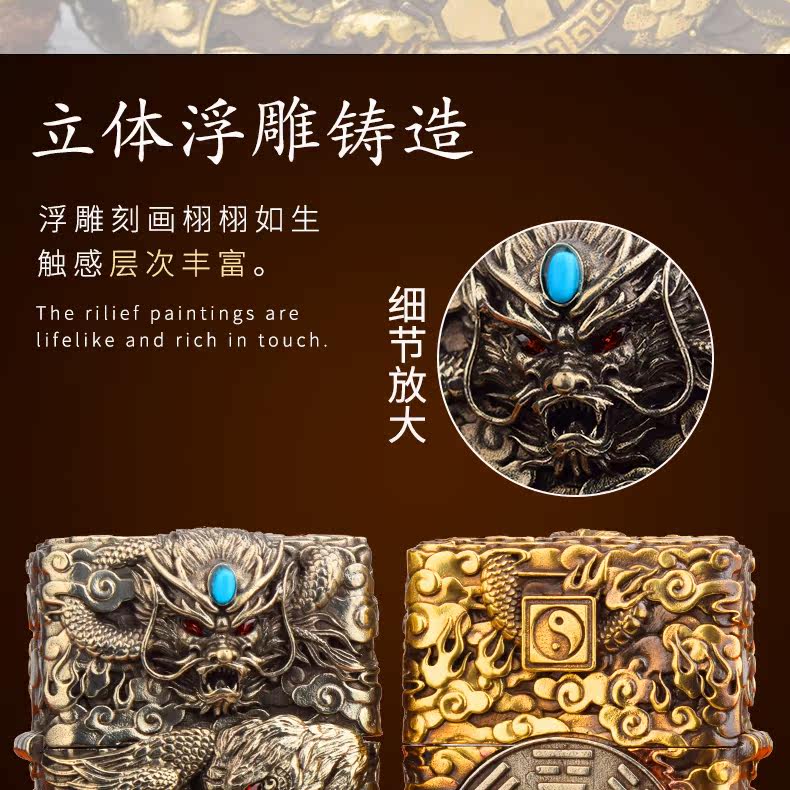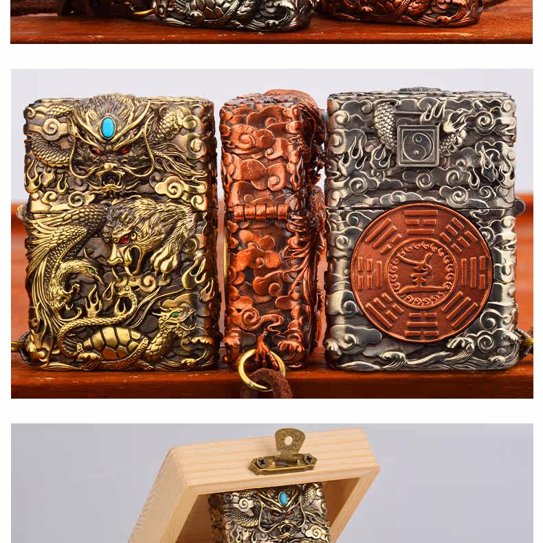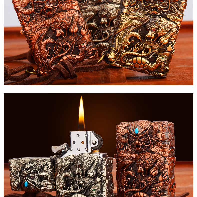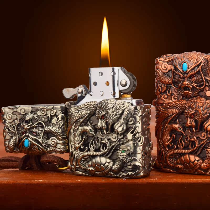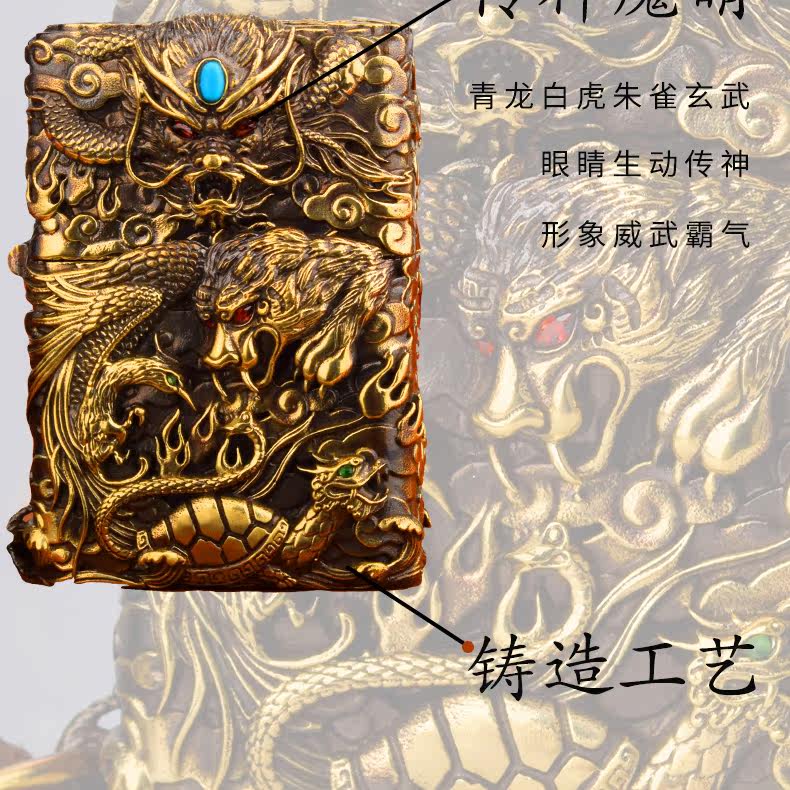 Траншеи подлинные четыре маленьких слона, голубой дракон белый тигр Suzaku Xuanwu тисненный трехмерный лист медной доспехи керосиновое масло зажигало