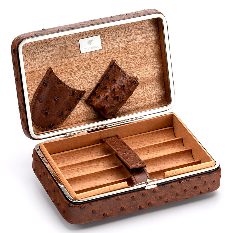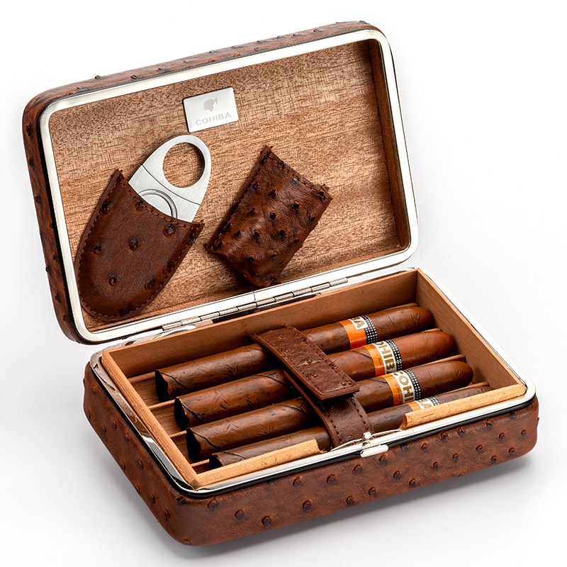 Алюминиевая сплава сплава сигарная сумка Портативная сигара увлажняющая коробка кубинская личность страуса из кожаная сигарная коробка