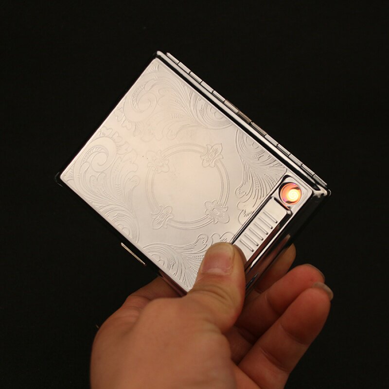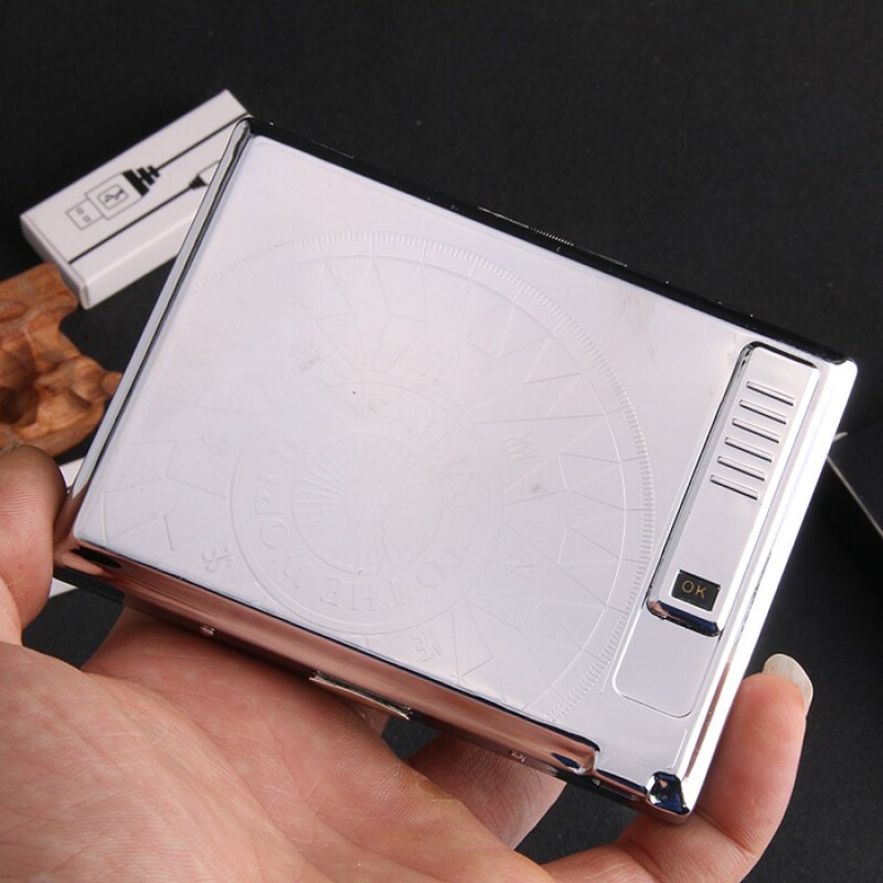 Портсигар из нержавеющей стали с usb-зарядкой, эластичная ультратонкая ветрозащитная зажигалка