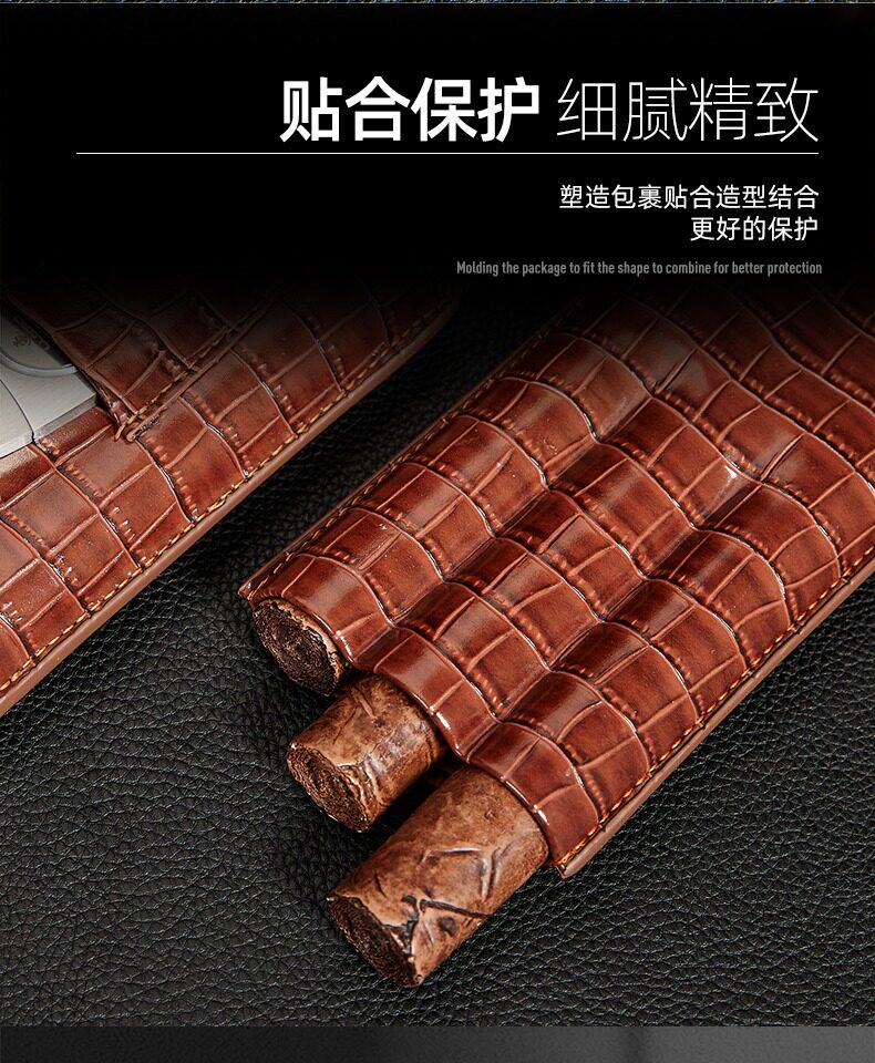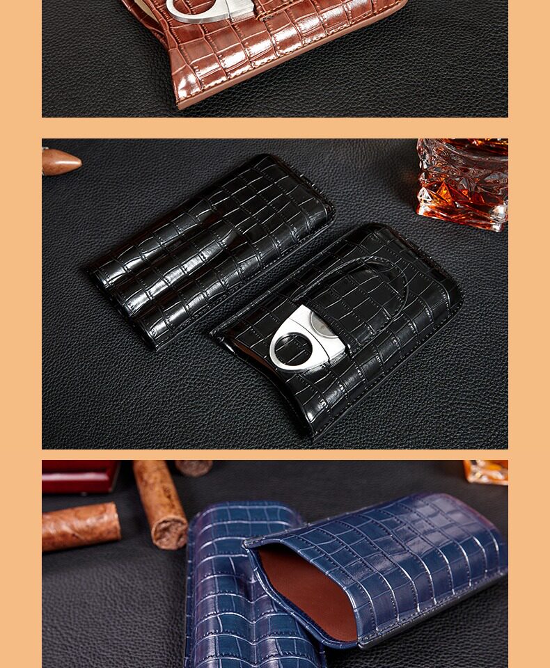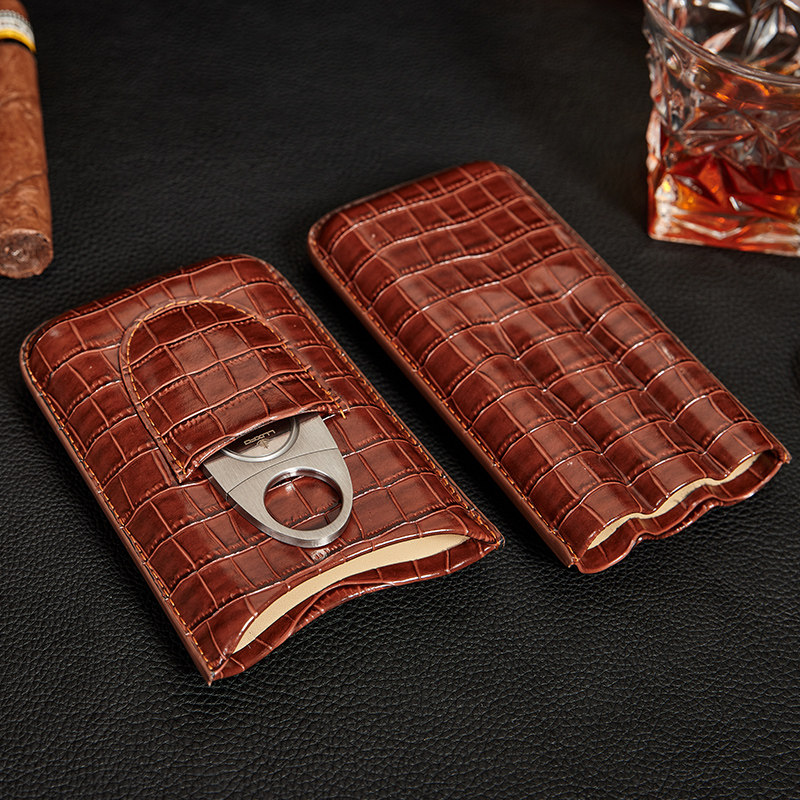 Портативный кожаный чехол, ножницы, комплект, портсигар, из натуральной кожи, крокодиловый принт, 3 шт