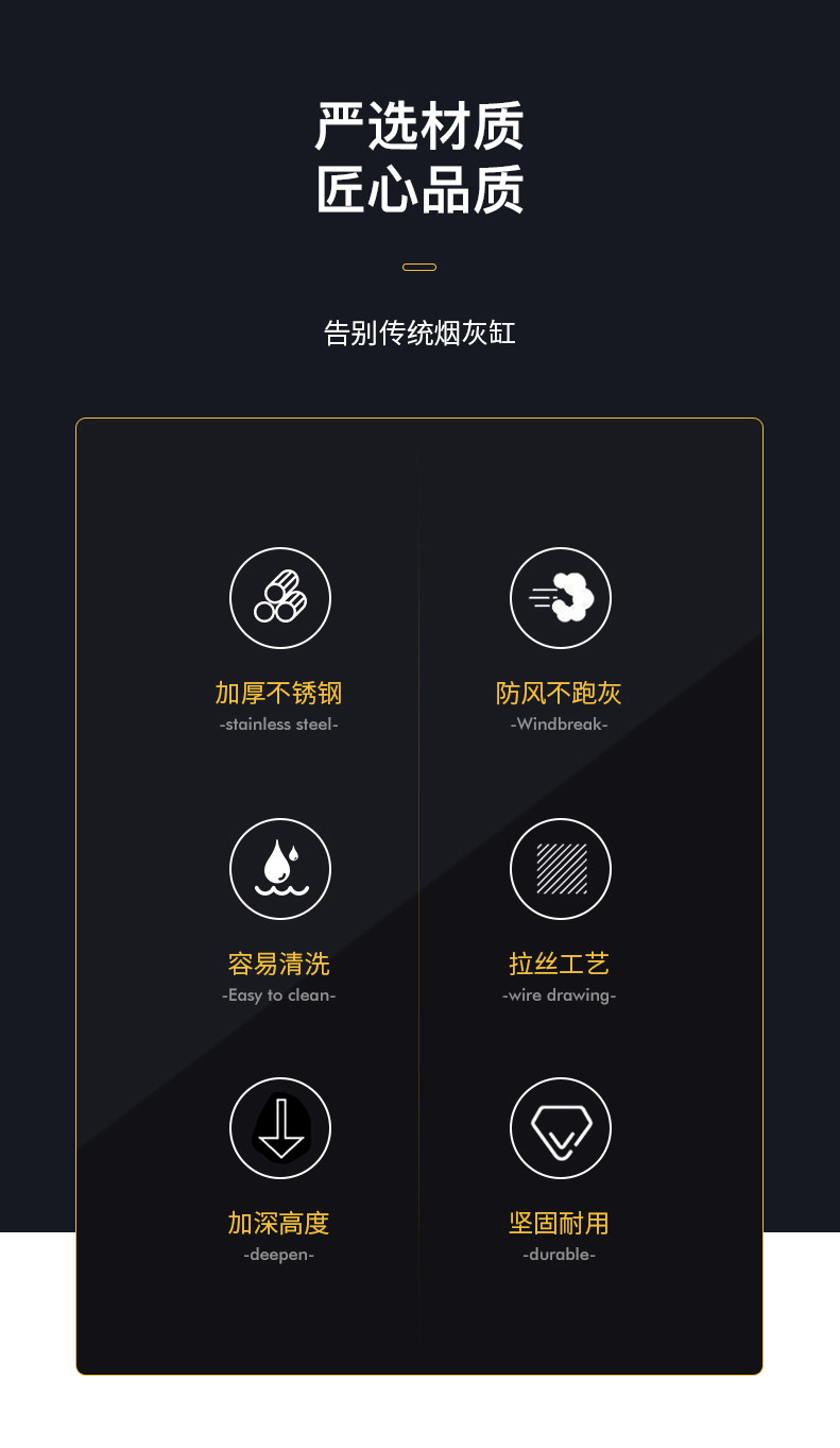 - Черная пепельница из нержавеющей стали