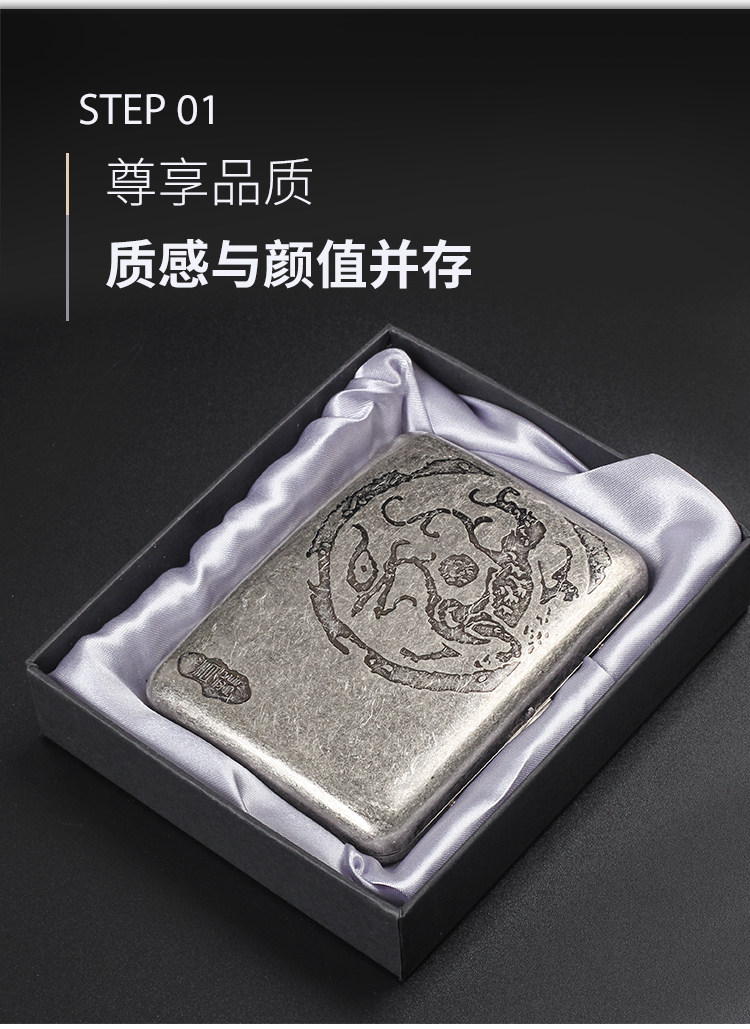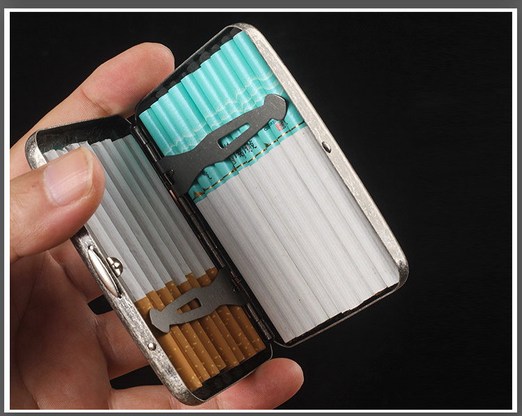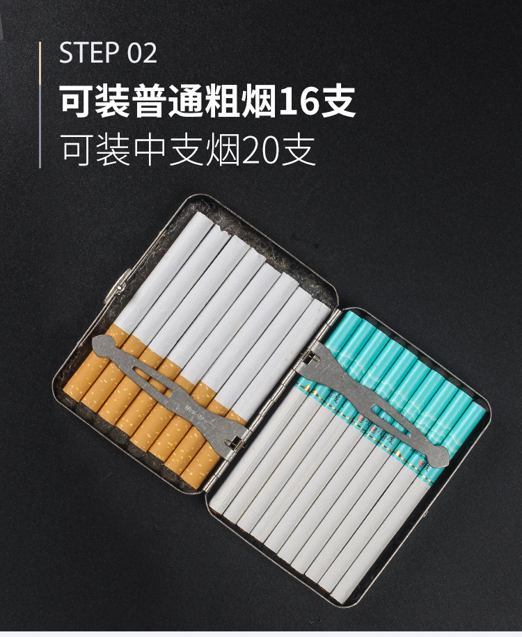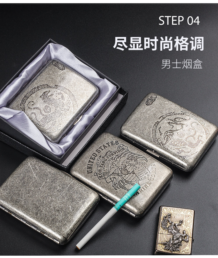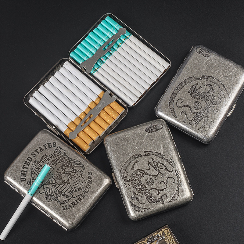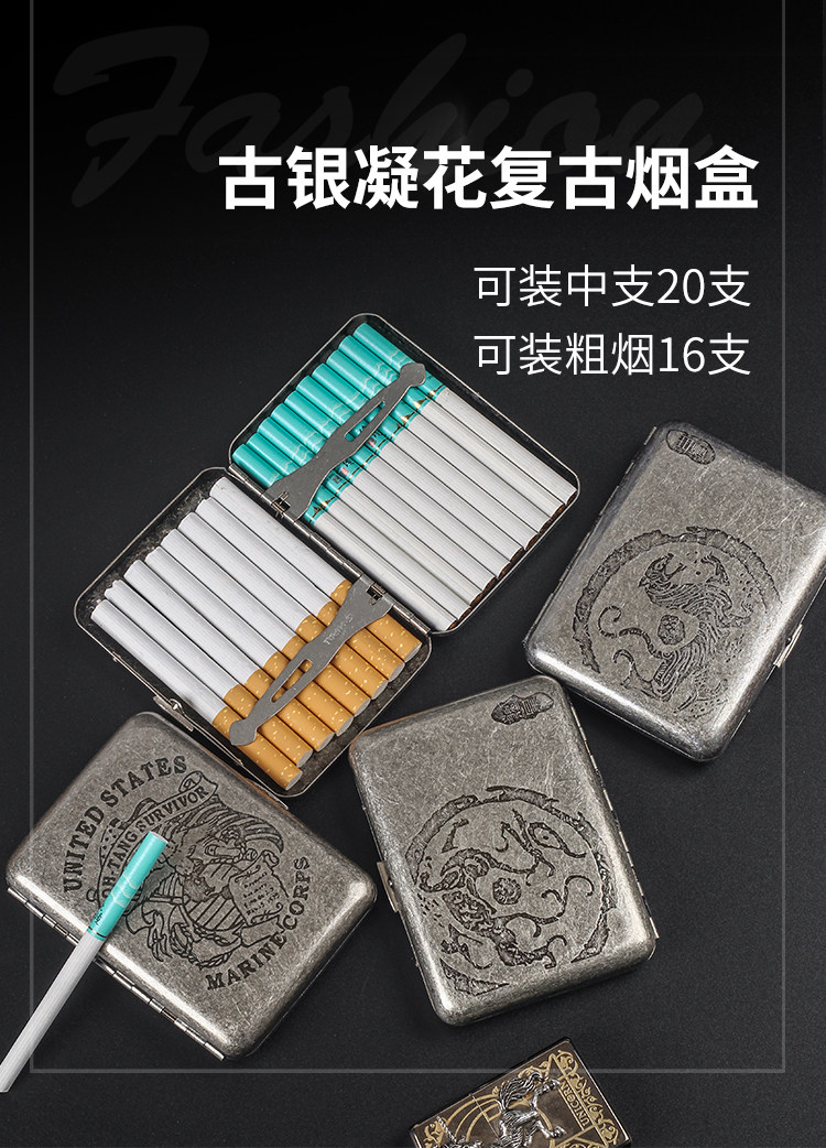 贵派 Мужская портативная сигаретная коробка 16 упаковок устойчивой к давлению в влажности металлической выгравированной флип-сигаретной коробки грубая сигаретная сигарета двойная назначение