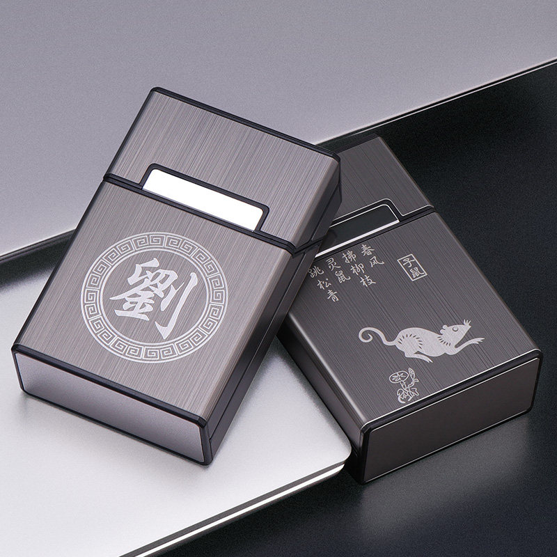 Портсигар, мужская портативная пластиковая металлическая креативная упаковка с гравюрой, 20 шт, DIY, делается под заказ
