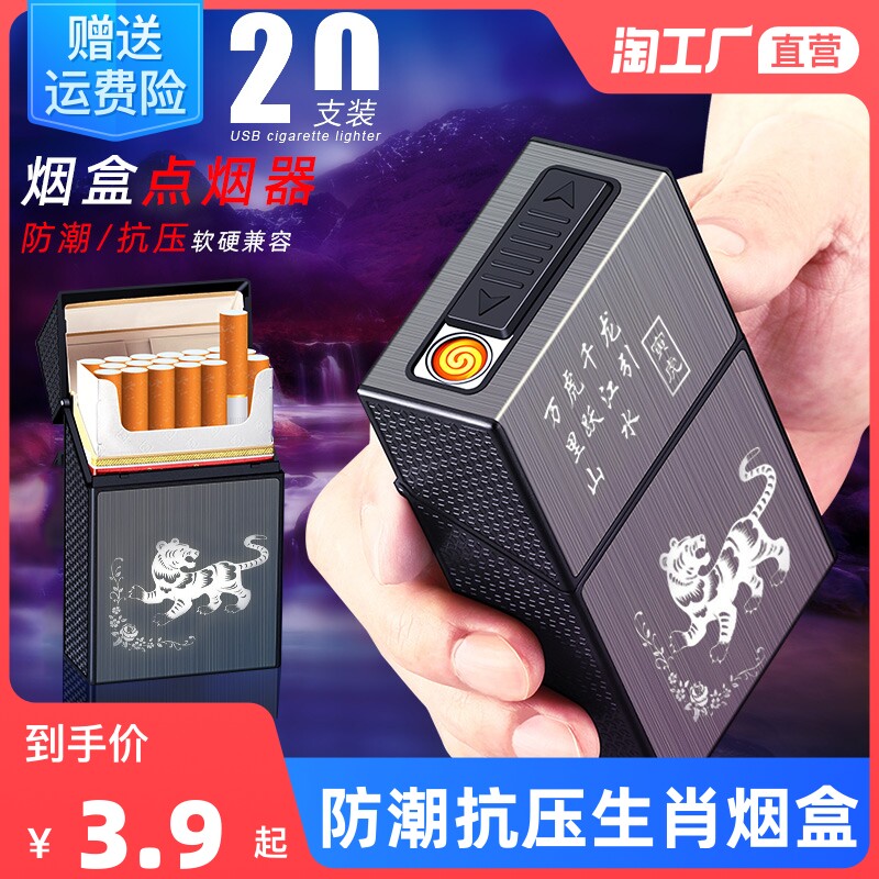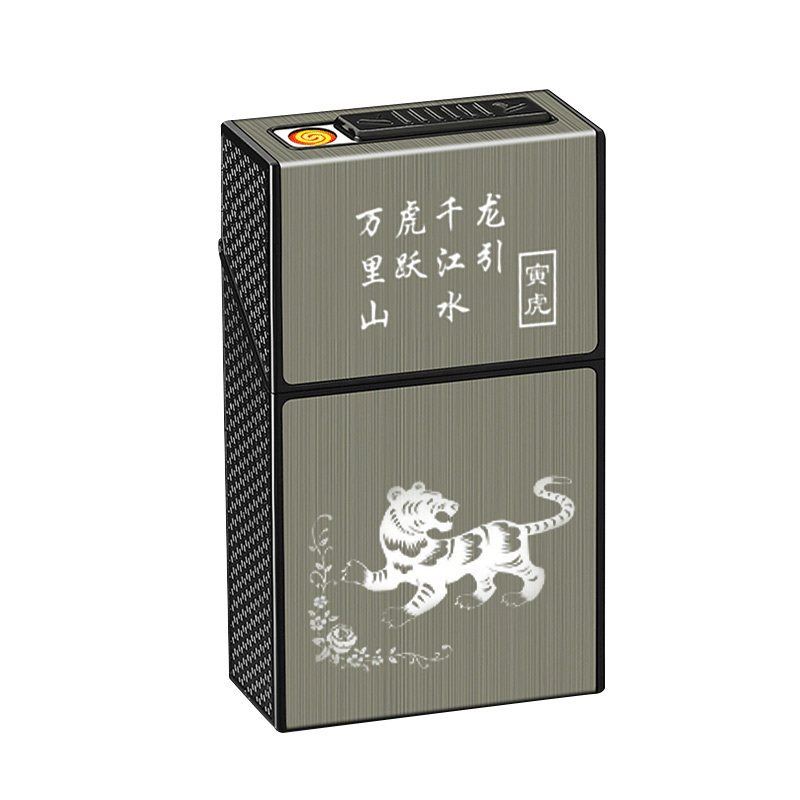 Зажигалка с зарядкой, ветрозащитный портсигар, пластиковая упаковка, 20 шт