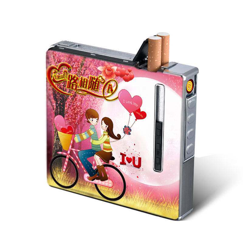 Металлический портсигар с зарядкой, мужская ветрозащитная креативная ультратонкая зажигалка, 20 шт