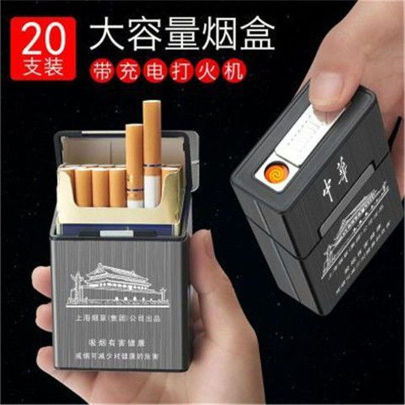 Портсигар, металлическая ветрозащитная портативная зажигалка с зарядкой, 20 шт, алюминиевый сплав