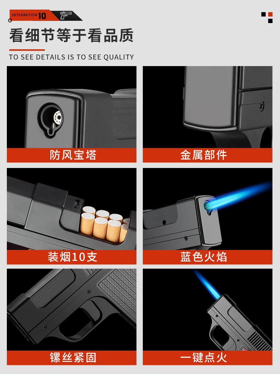 Креативная ветрозащитная надувная зажигалка, портсигар, портативный пистолет, популярно в интернете, 10 шт