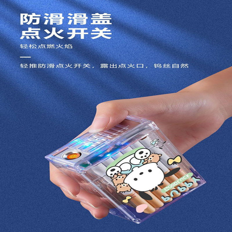 Прозрачный портативный пластиковый портсигар, зажигалка с зарядкой, лента, 20 шт
