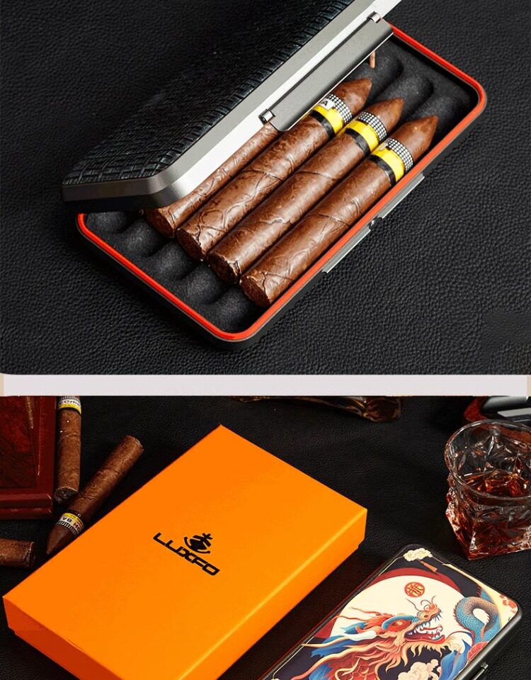 Ультратонкий портативный металлический увлажняющий элитный портсигар, алюминиевый сплав, из натуральной кожи, 3 см