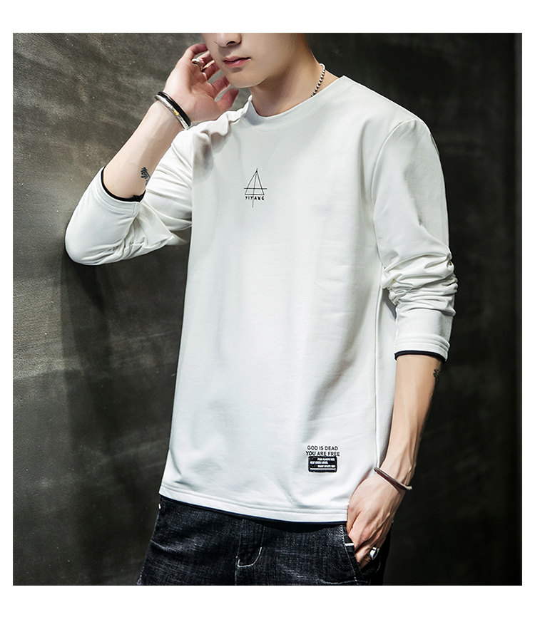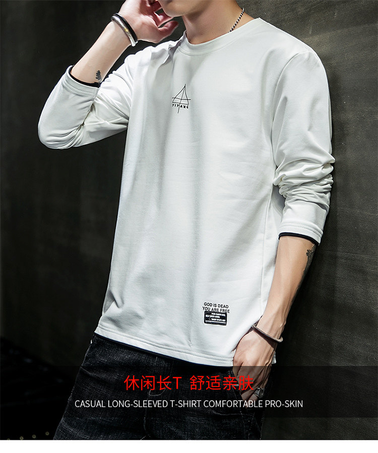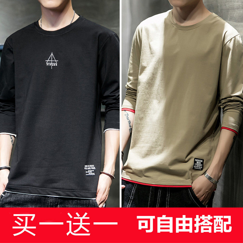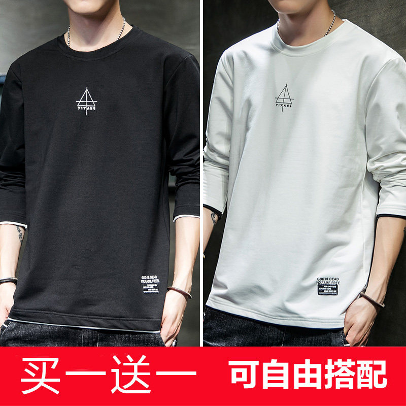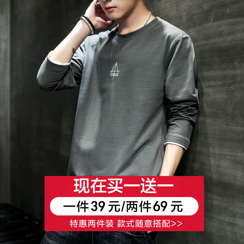 Осенняя футболка, хлопковый лонгслив, трендовая приятная телу толстовка с круглым воротником для школьников, в корейском стиле, оверсайз