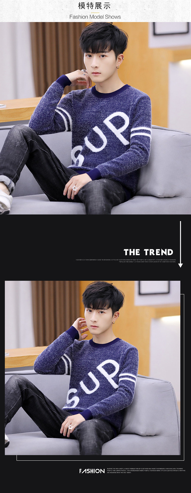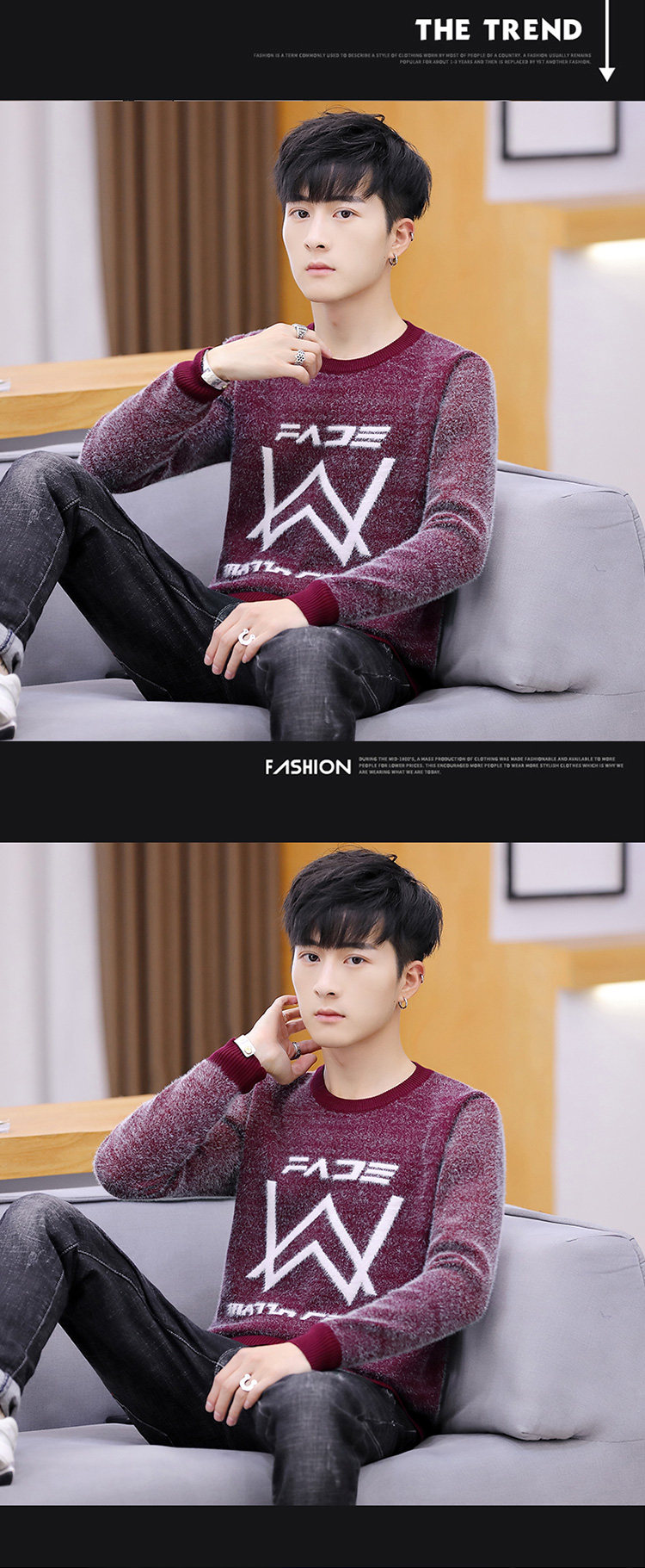 Мужской демисезонный трендовый брендовый бархатный удерживающий тепло свитер, в корейском стиле