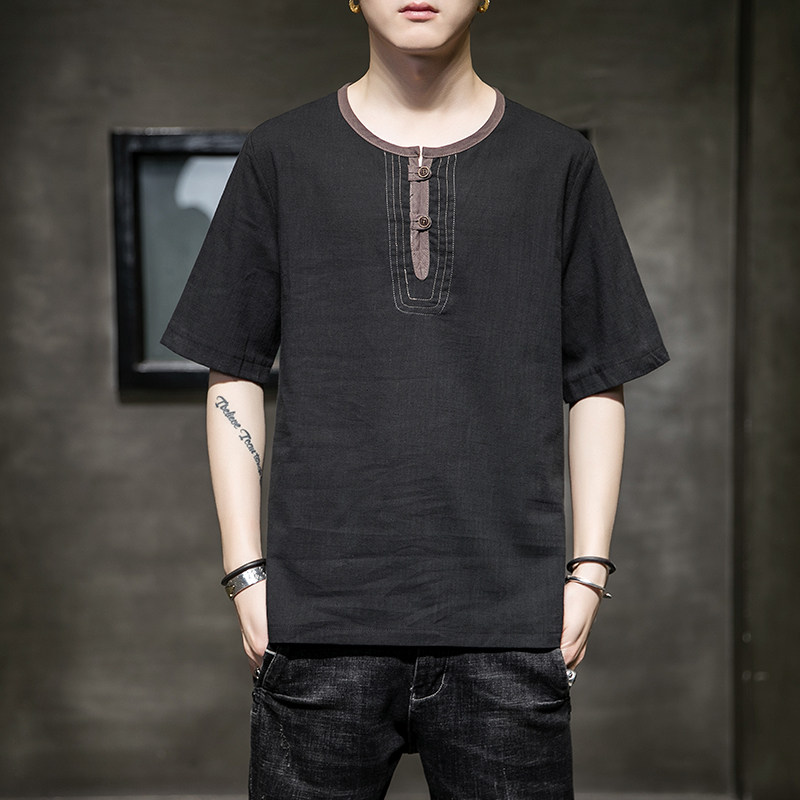Тонкая ретро футболка, китайский стиль, короткий рукав, большой размер