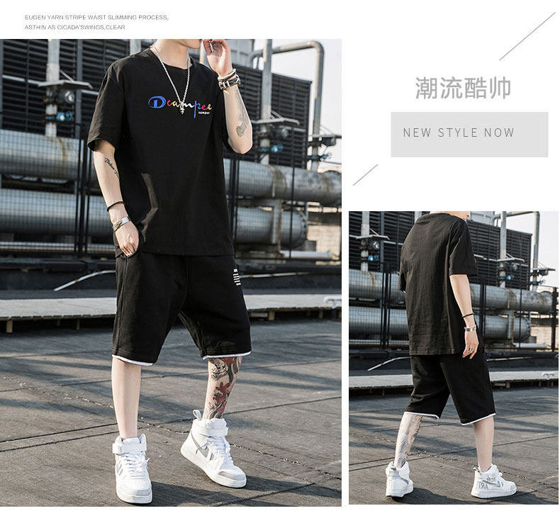 Трендовая футболка с коротким рукавом, хлопковый комплект для отдыха, в корейском стиле, оверсайз