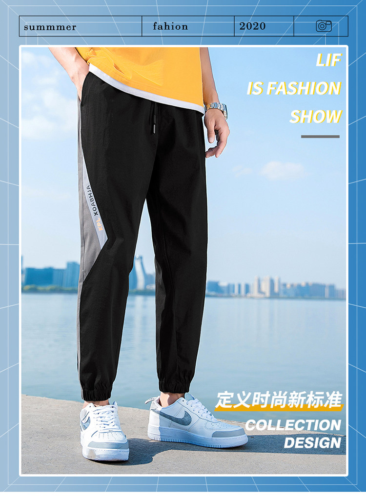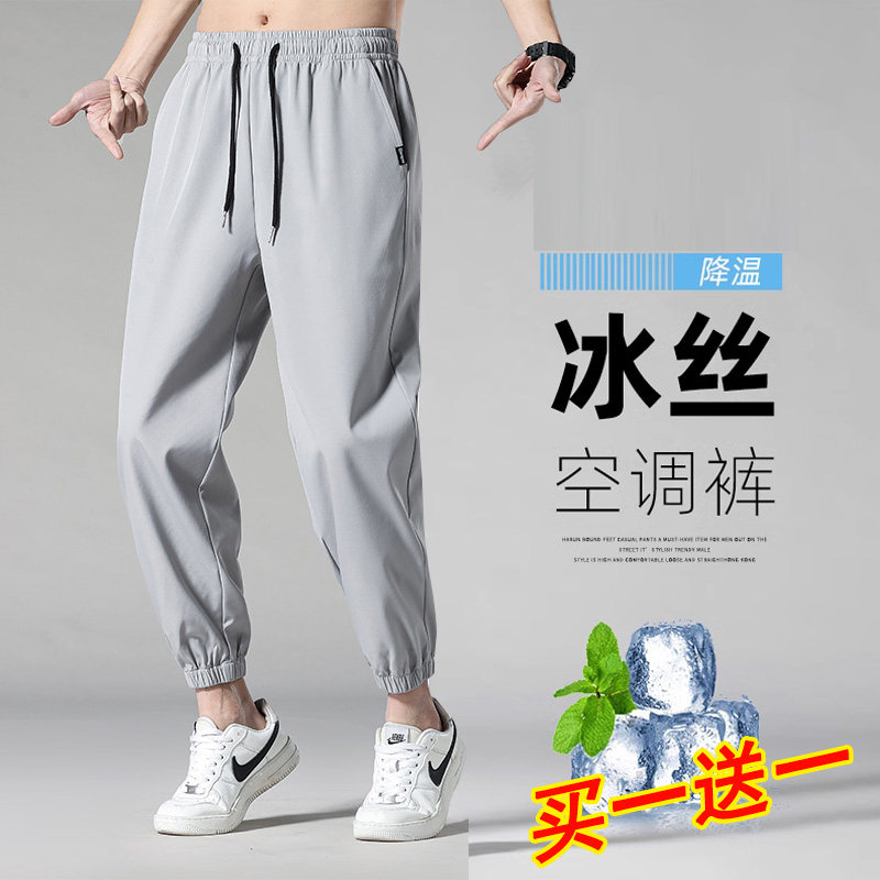 Мужские штаны, трендовые летние спортивные шелковые универсальные повседневные брюки