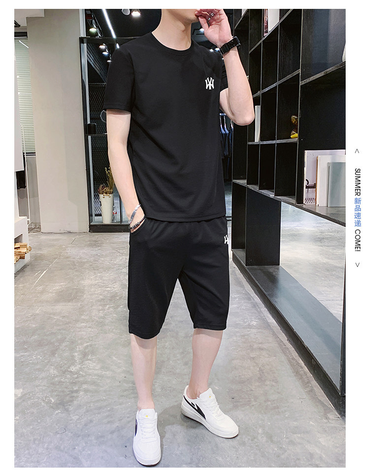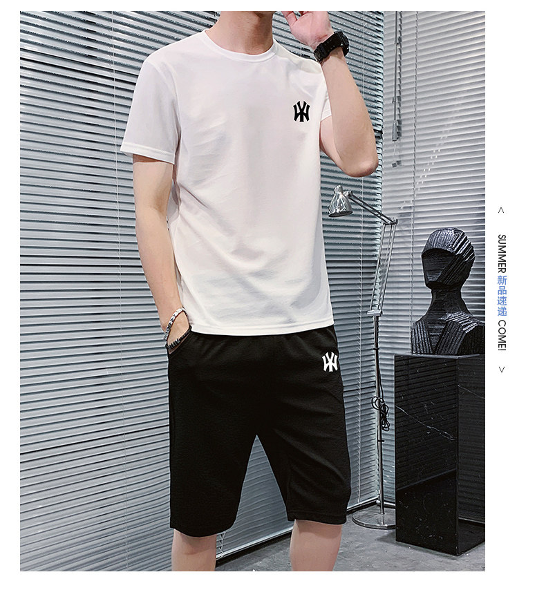 Летний трендовый спортивный костюм, модная футболка с коротким рукавом, шорты, штаны, оверсайз, в корейском стиле