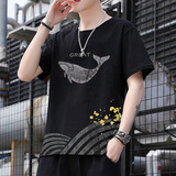 Трендовая брендовая футболка с коротким рукавом, хлопковый шелковый комплект для отдыха, оверсайз