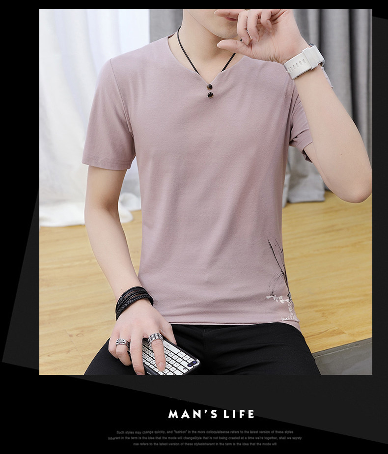 Летняя трендовая универсальная хлопковая базовая приятная телу футболка с коротким рукавом, V-образный вырез, облегающий крой
