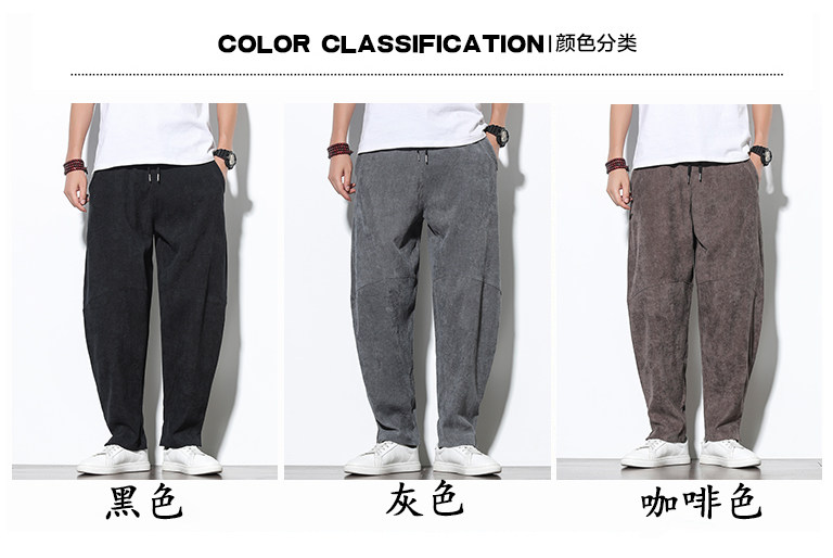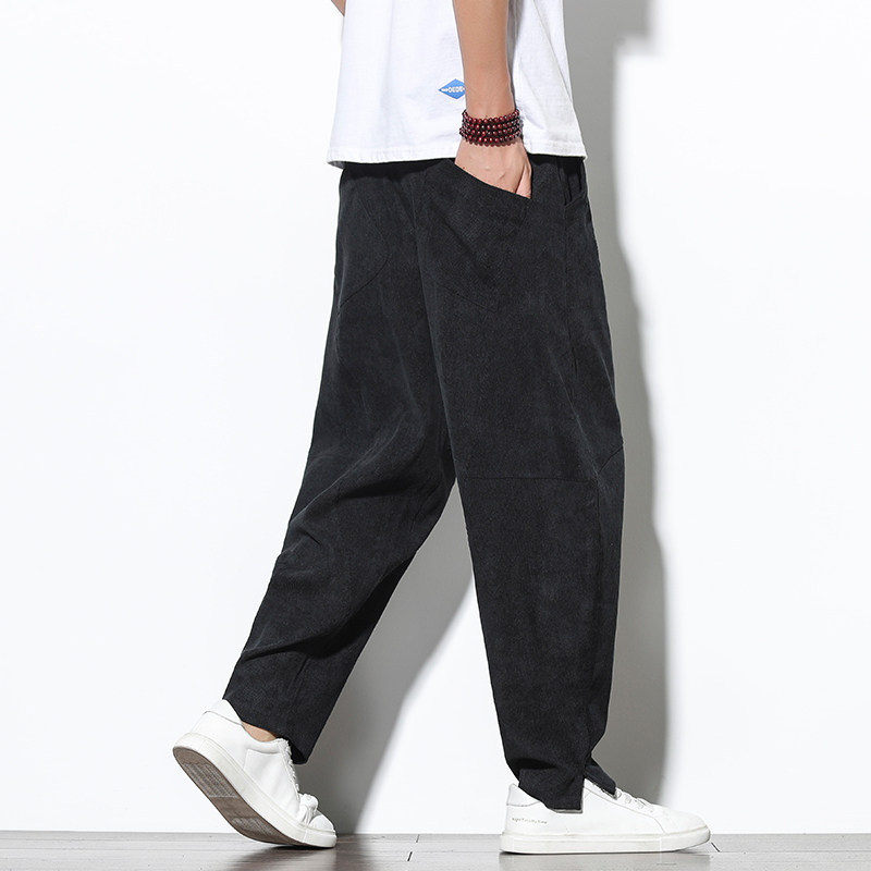 Вельветовые штаны, китайский стиль, большой размер, свободный прямой крой