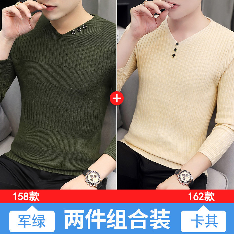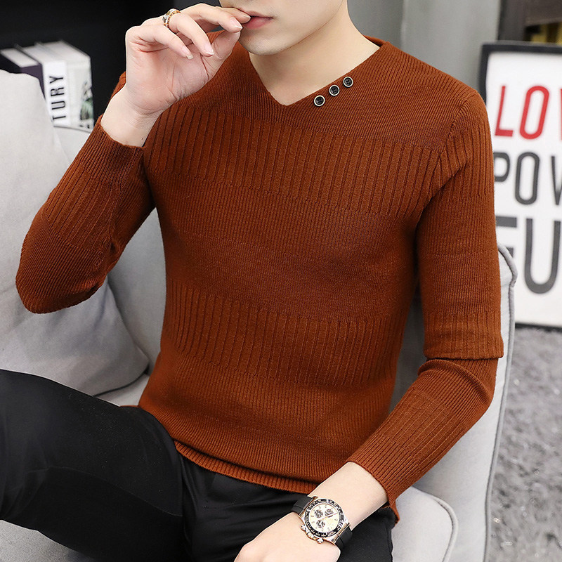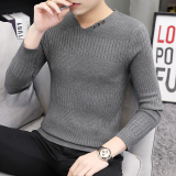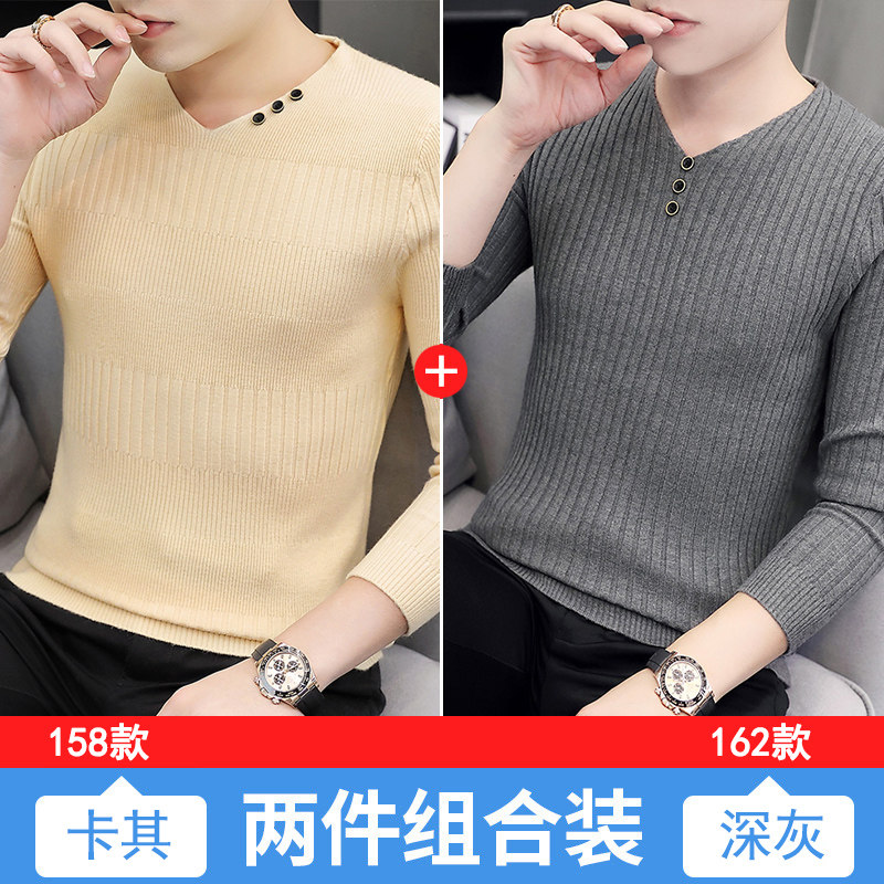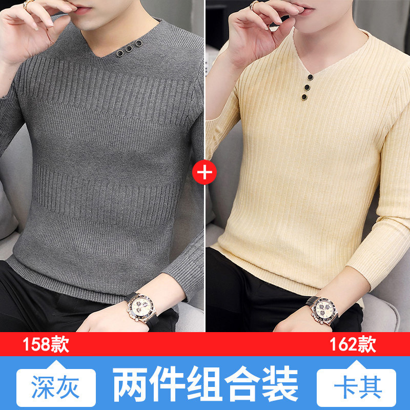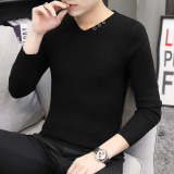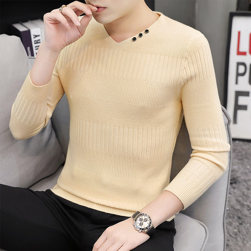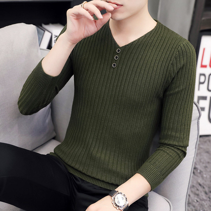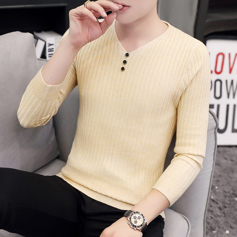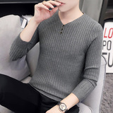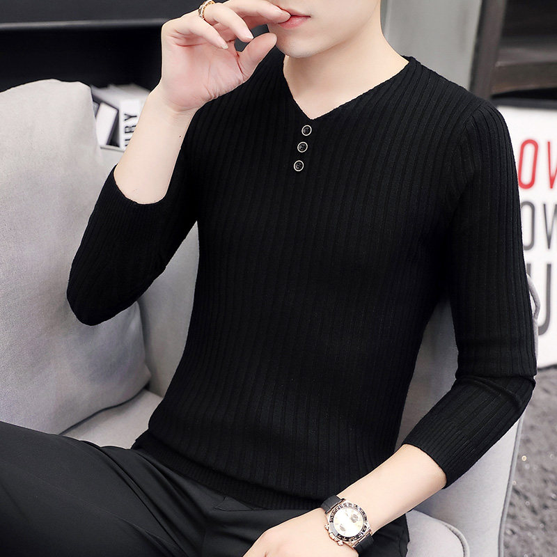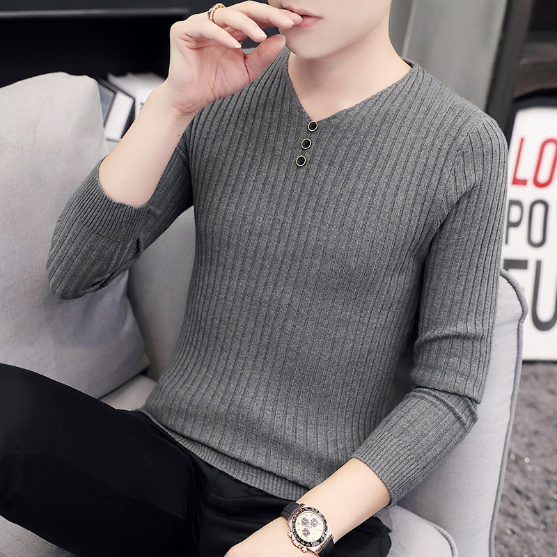 Свитер, демисезонный лонгслив, трикотажная базовая футболка, 2020, V-образный вырез, облегающий крой, в корейском стиле