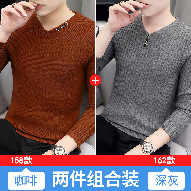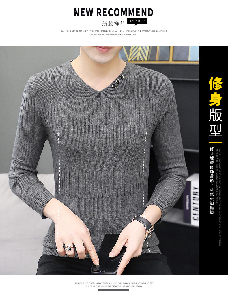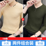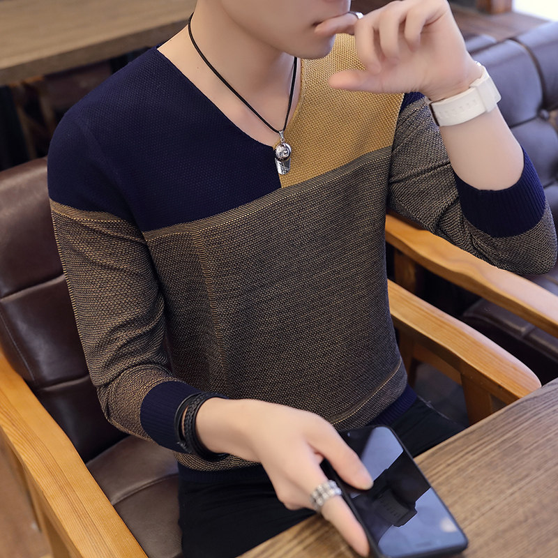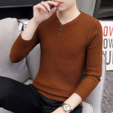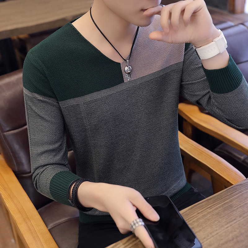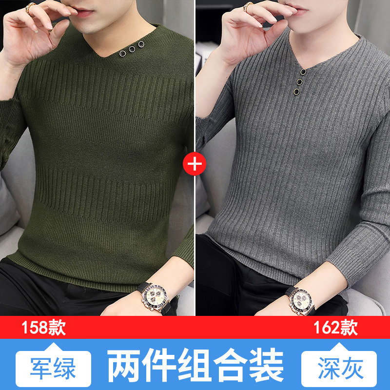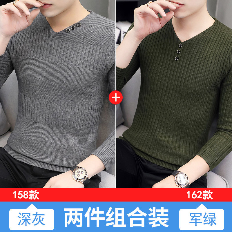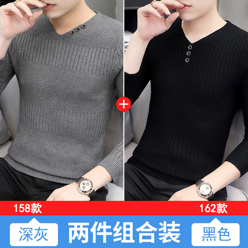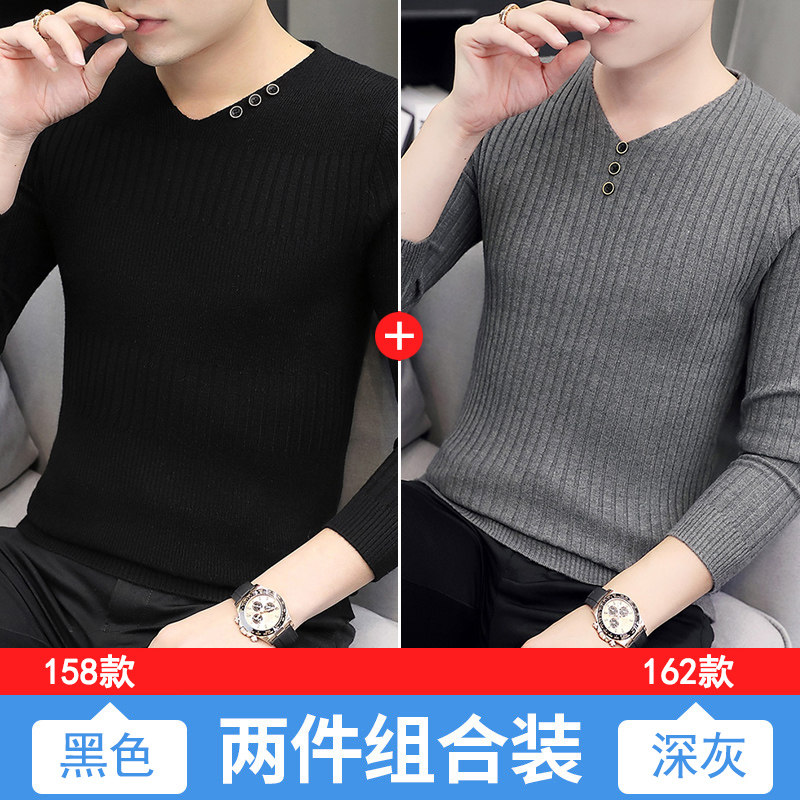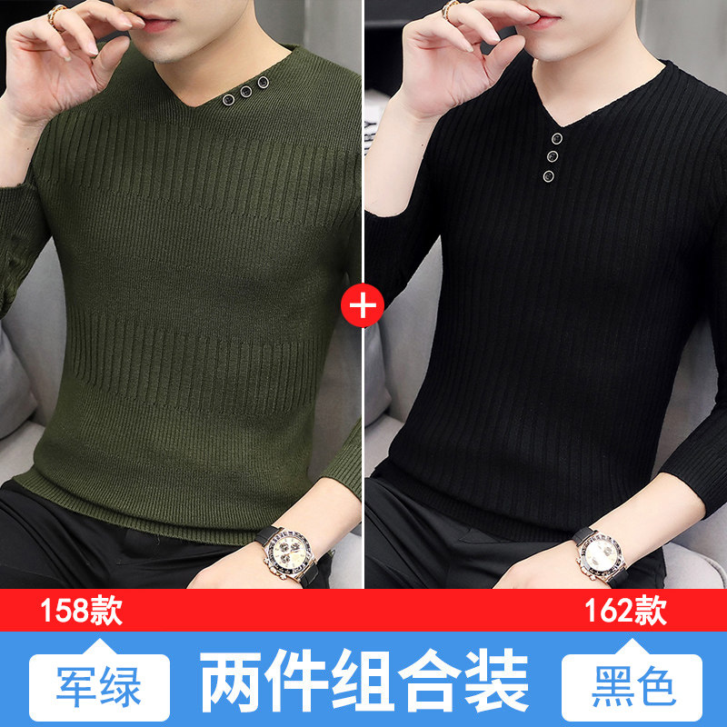 Свитер, демисезонный лонгслив, трикотажная базовая футболка, 2020, V-образный вырез, облегающий крой, в корейском стиле