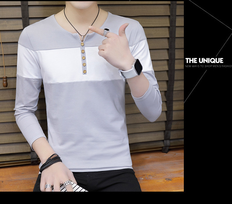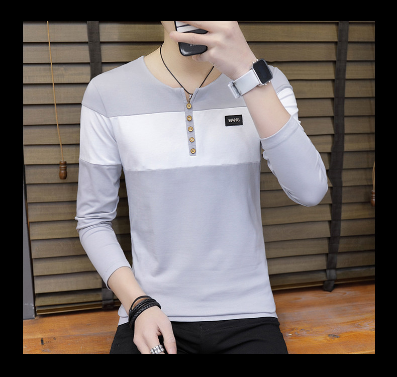 Демисезонный хлопковый базовый приятный телу трендовый брендовый лонгслив, 2020, V-образный вырез, в корейском стиле