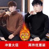 Мужской демисезонный свитер, трендовые утепленные удерживающие тепло трикотажные джинсы с начесом для влюбленных, в корейском стиле
