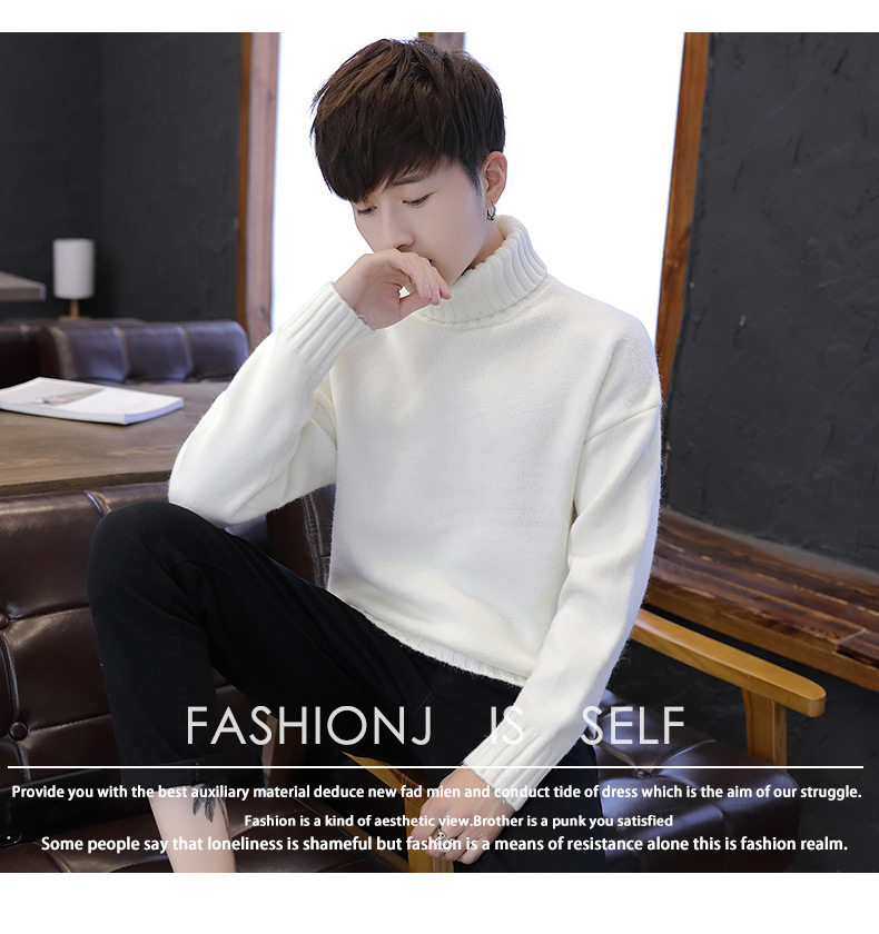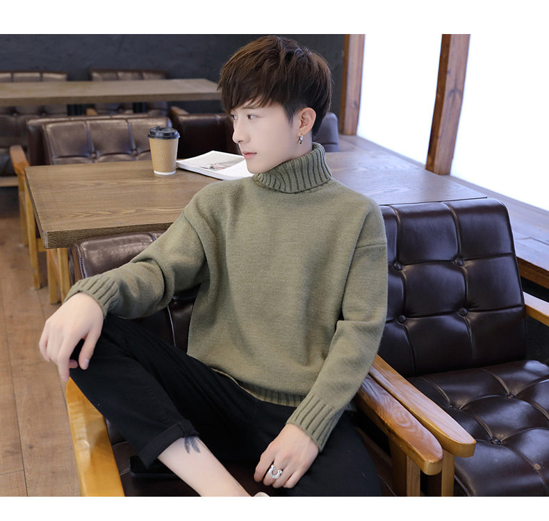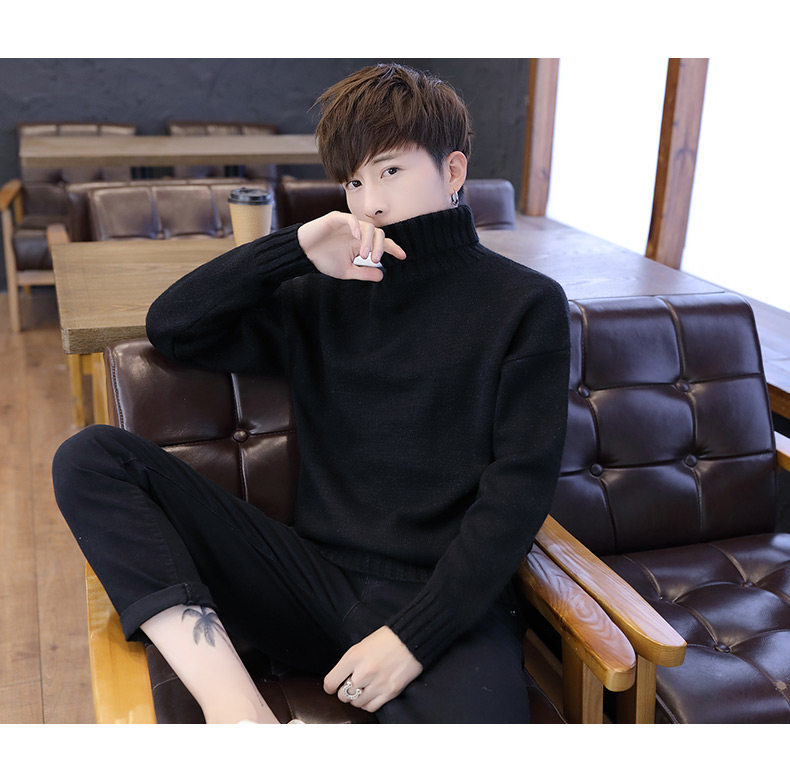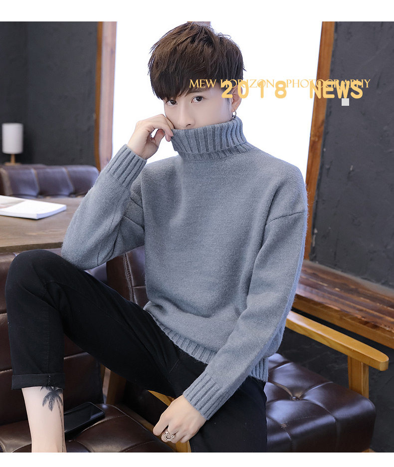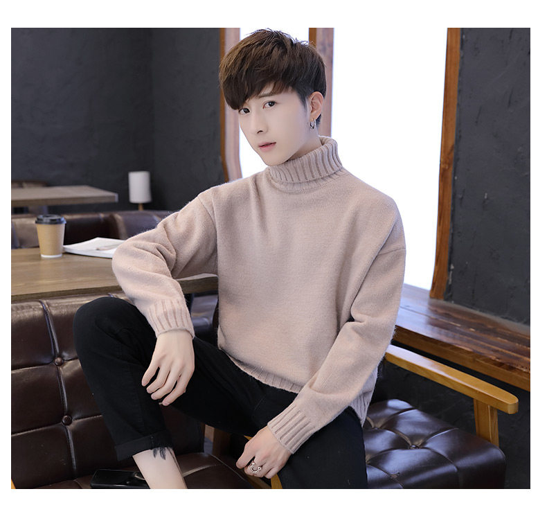 Мужской демисезонный трендовый трикотажный утепленный шерстяной свитер для влюбленных, высокий воротник, оверсайз