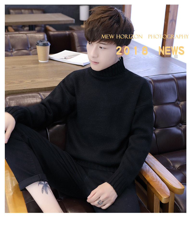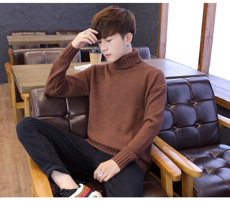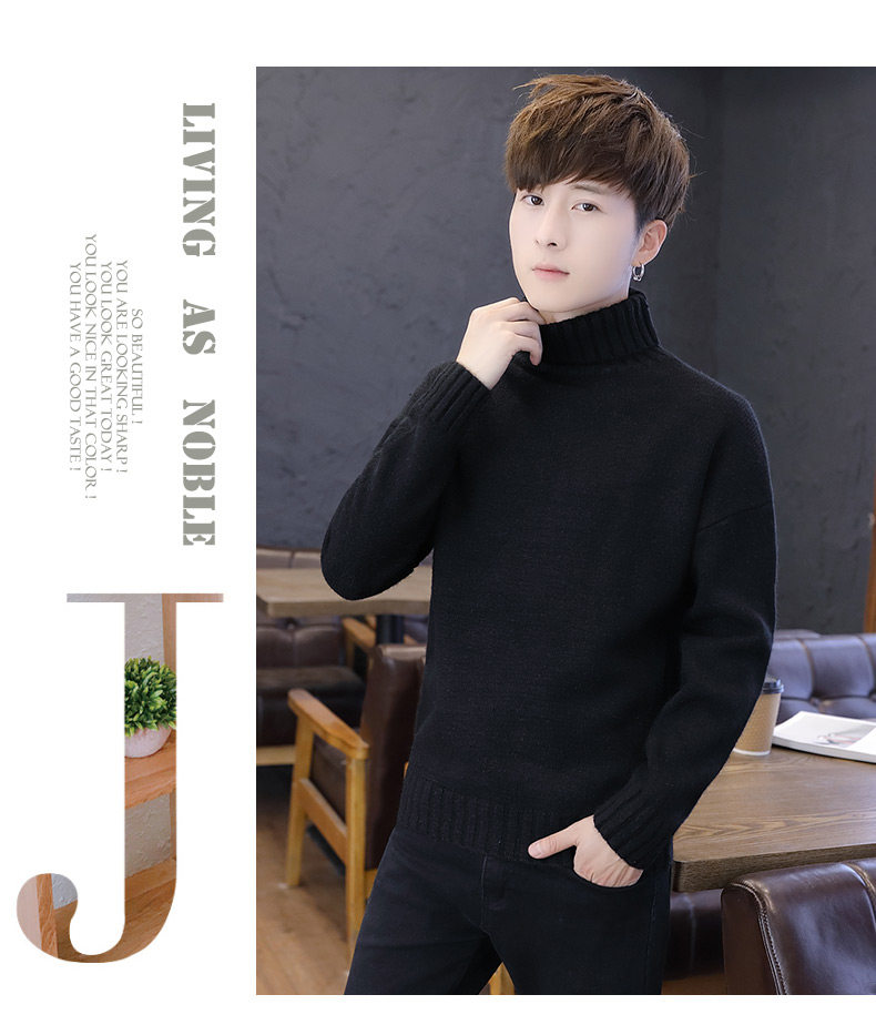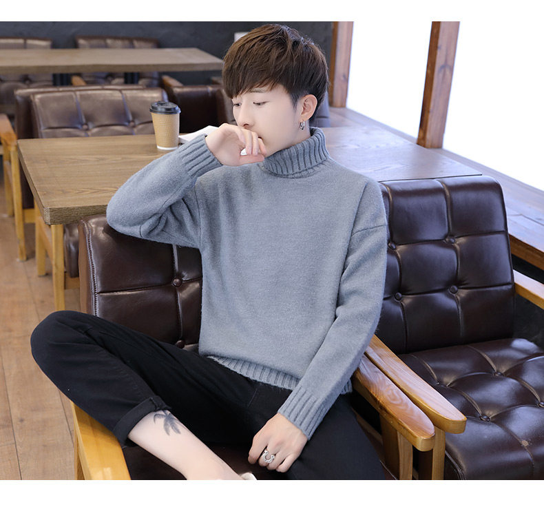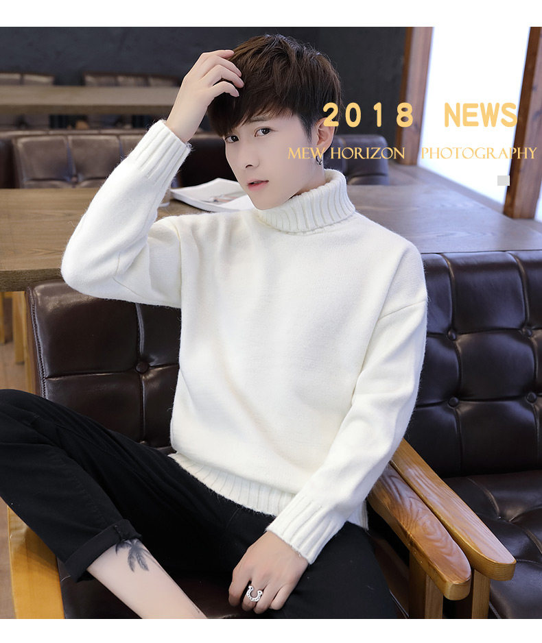 Мужской демисезонный трендовый трикотажный утепленный шерстяной свитер для влюбленных, высокий воротник, оверсайз