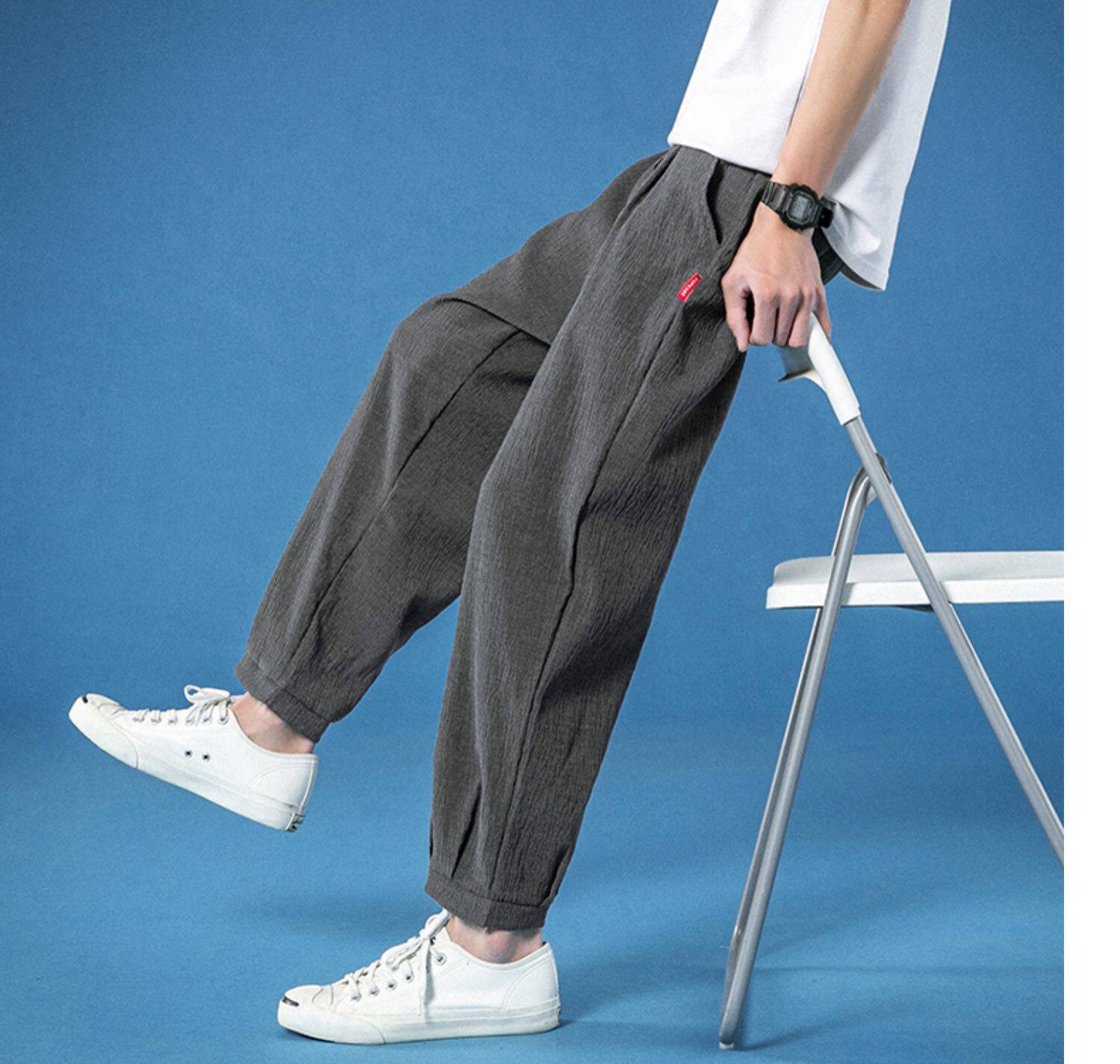 Летние трендовые шелковые универсальные штаны, свободный прямой крой, в корейском стиле, большой размер