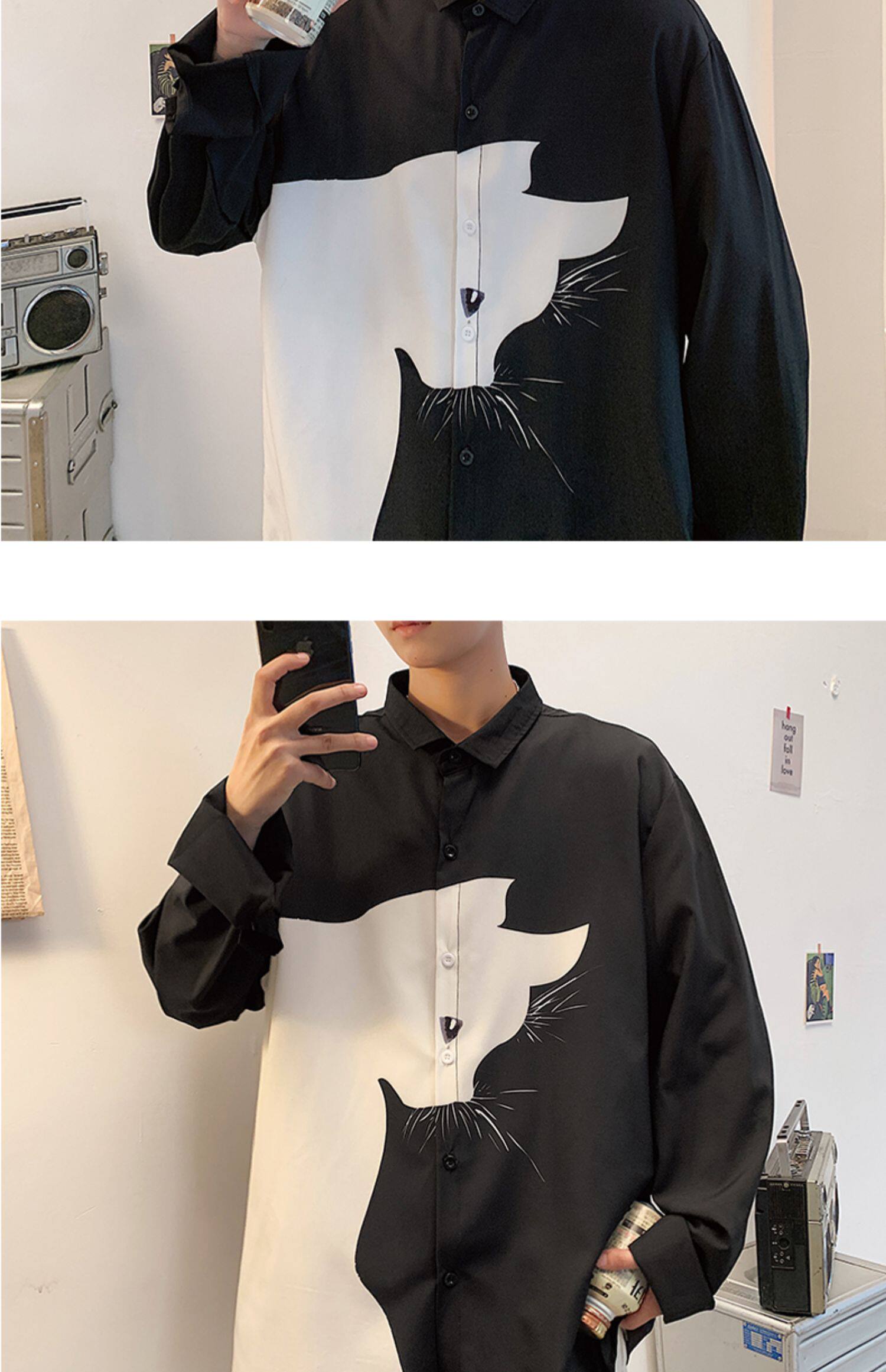 Мужская рубашка, трендовый японский тонкий лонгслив, изысканный стиль, в корейском стиле