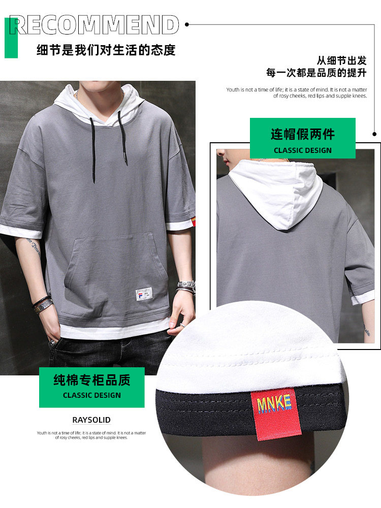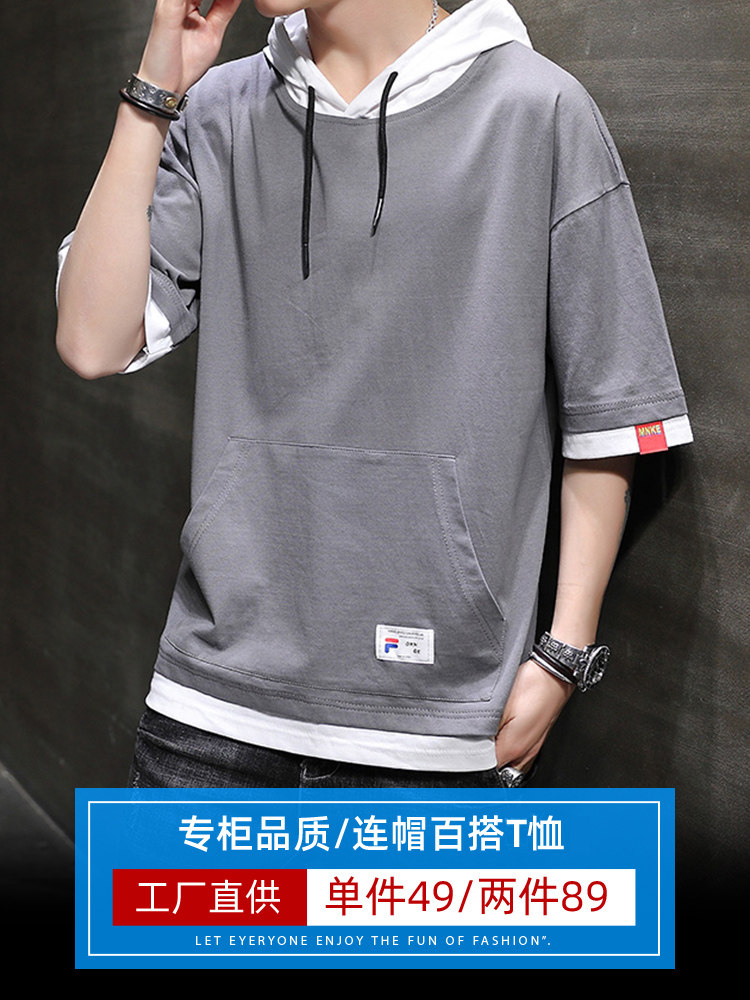 Летняя трендовая брендовая футболка с коротким рукавом, хлопковый комплект с капюшоном, шелковая толстовка