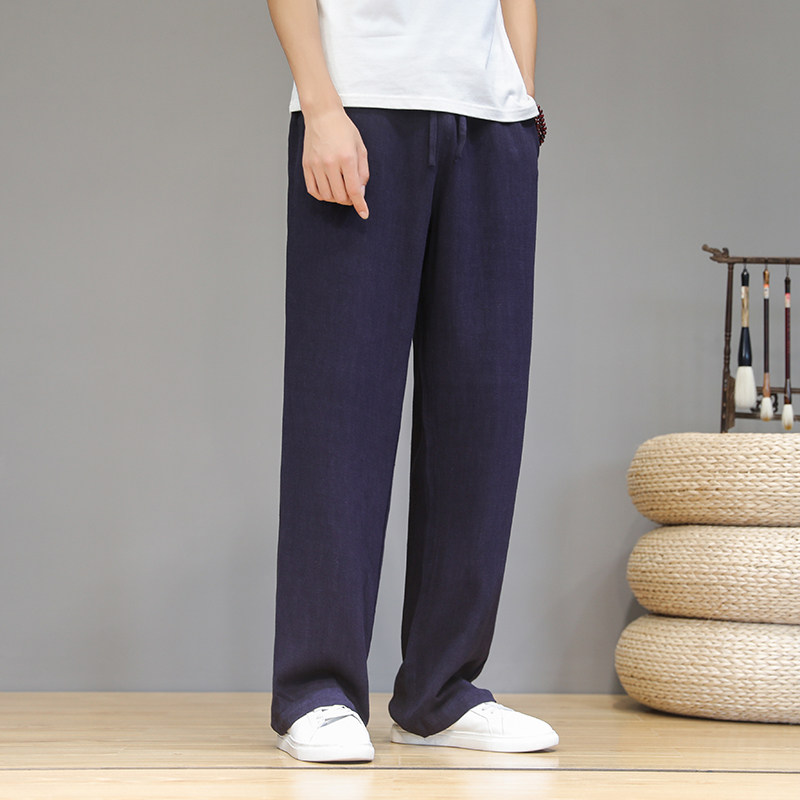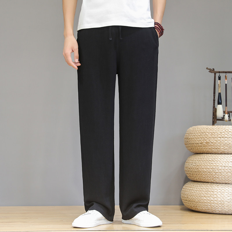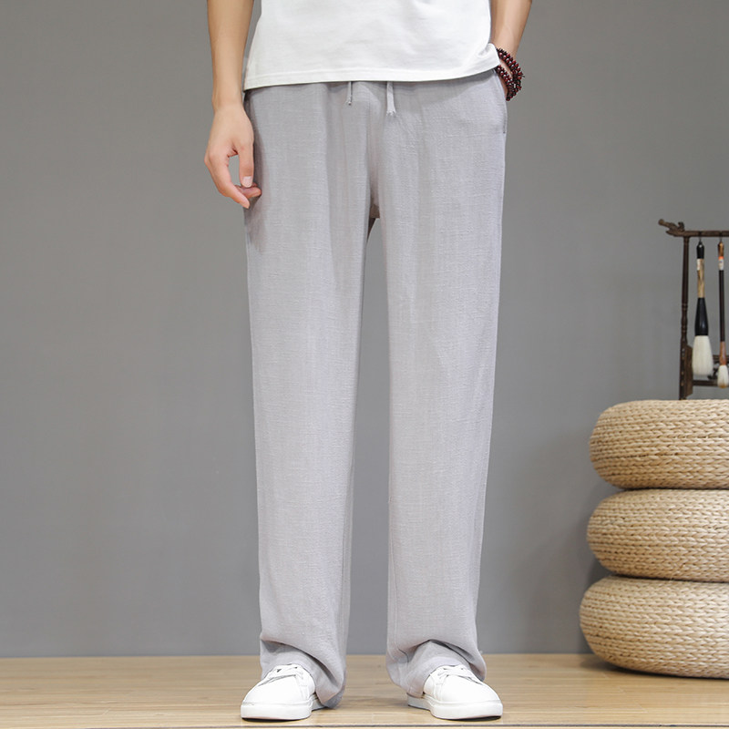 Летние тонкие дышащие ретро штаны для мальчиков, китайский стиль, из хлопка и льна, свободный прямой крой