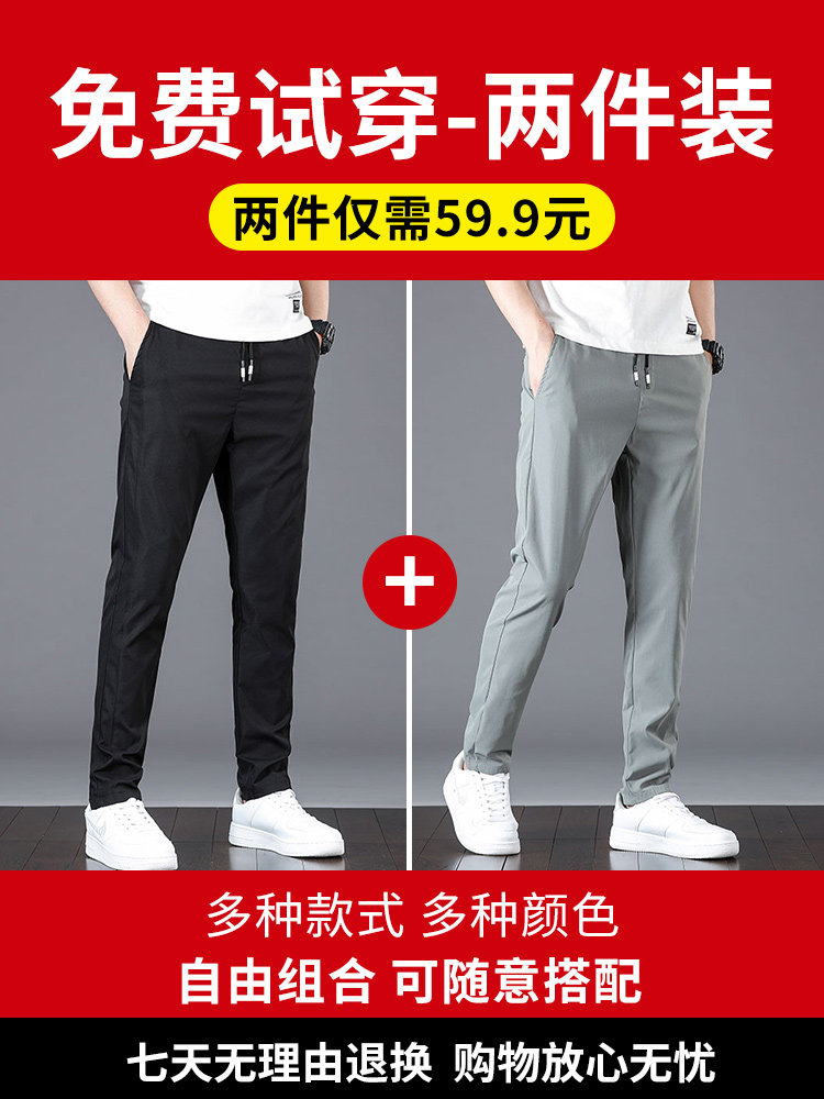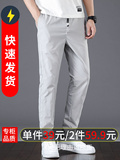 Мужские шелковые быстросохнущие эластичные летние тонкие штаны для отдыха, свободный прямой крой
