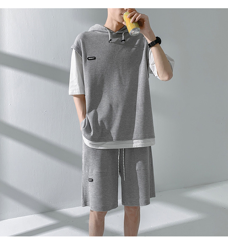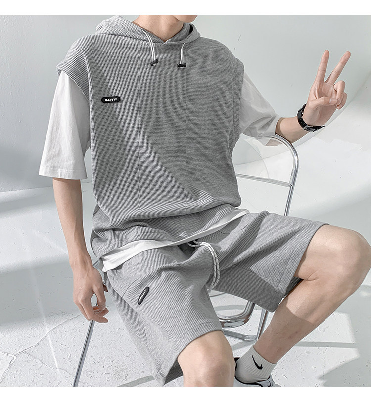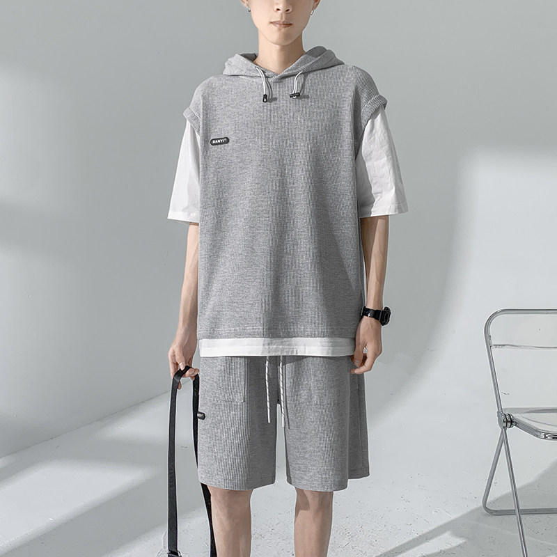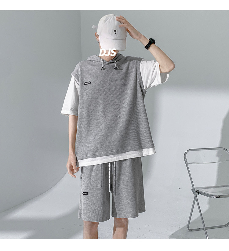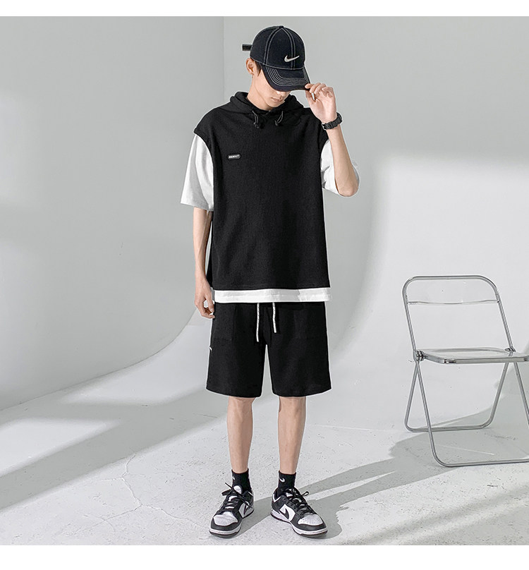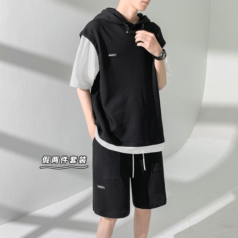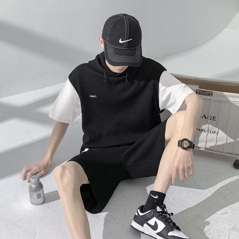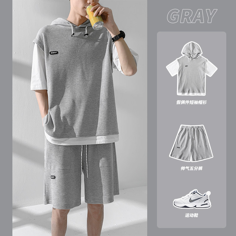 Футболка с коротким рукавом, трендовый спортивный костюм с капюшоном, летний комплект, толстовка, шорты, оверсайз