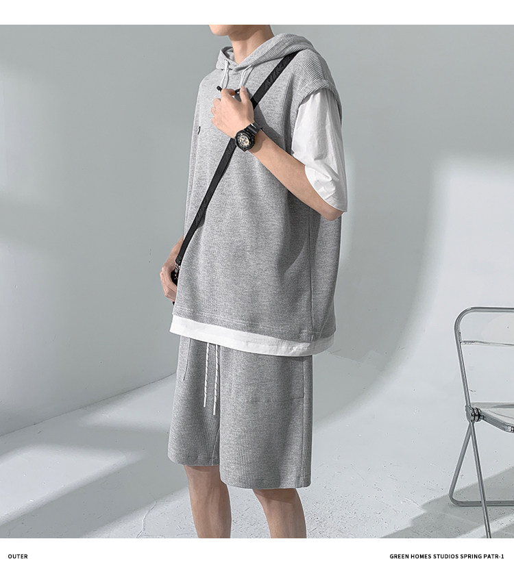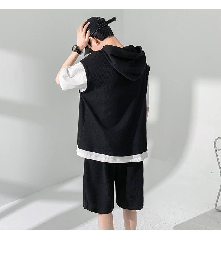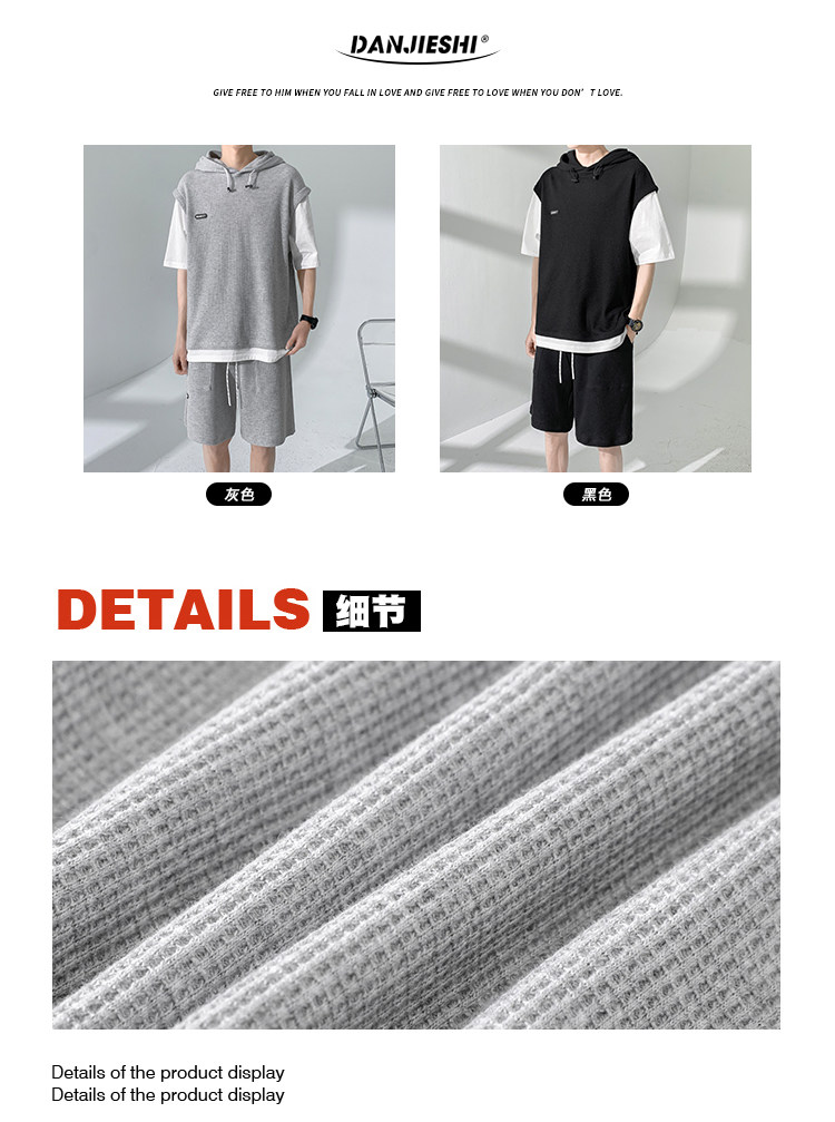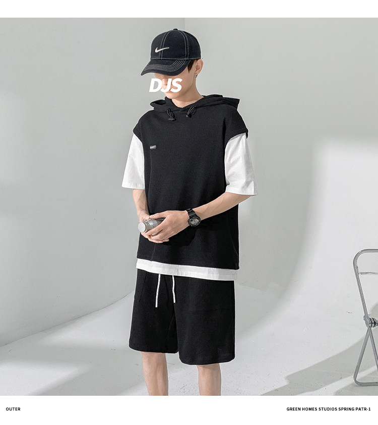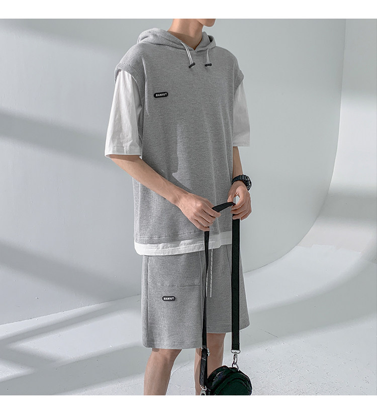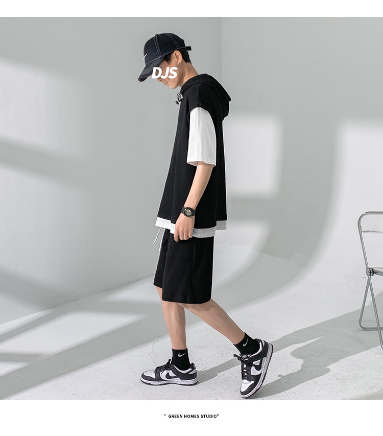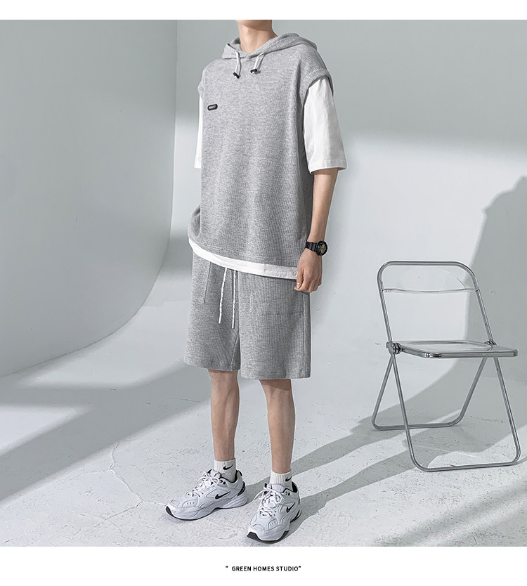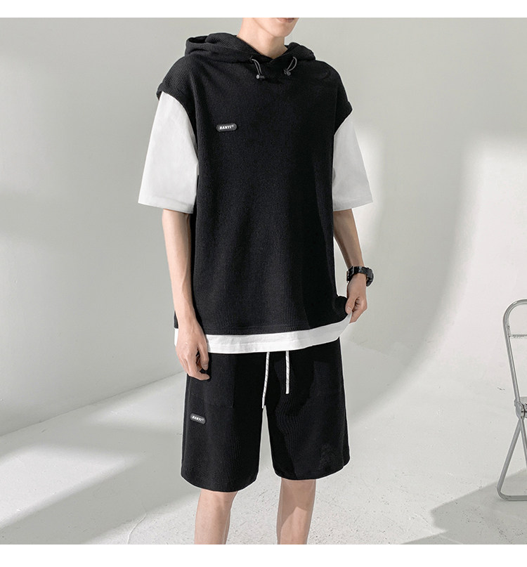 Футболка с коротким рукавом, трендовый спортивный костюм с капюшоном, летний комплект, толстовка, шорты, оверсайз