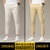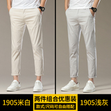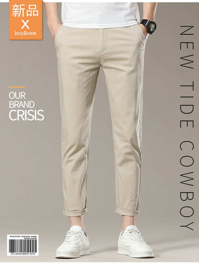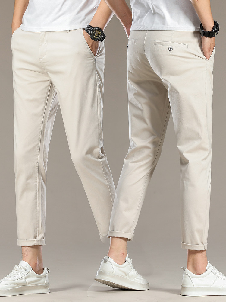 Мужские осенние бежевые штаны, облегающий крой
