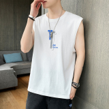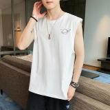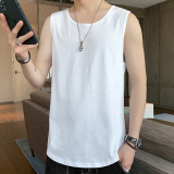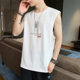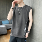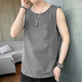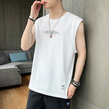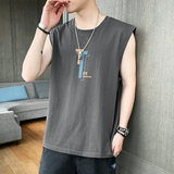 Мужской хлопковый жилет, тонкая спортивная шелковая быстросохнущая трендовая брендовая футболка без рукавов для спортзала