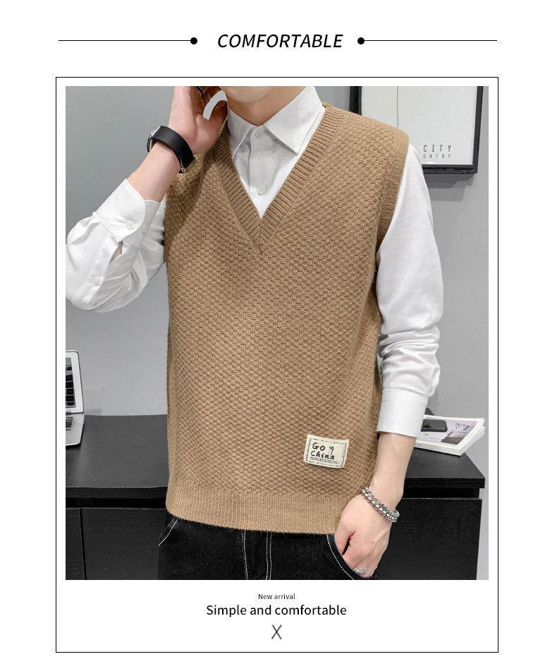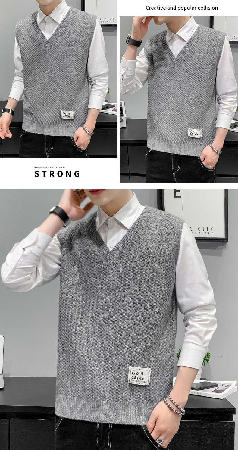 Осенний демисезонный трендовый жилет, брендовый трикотажный удерживающий тепло свитер без рукавов, оверсайз, V-образный вырез
