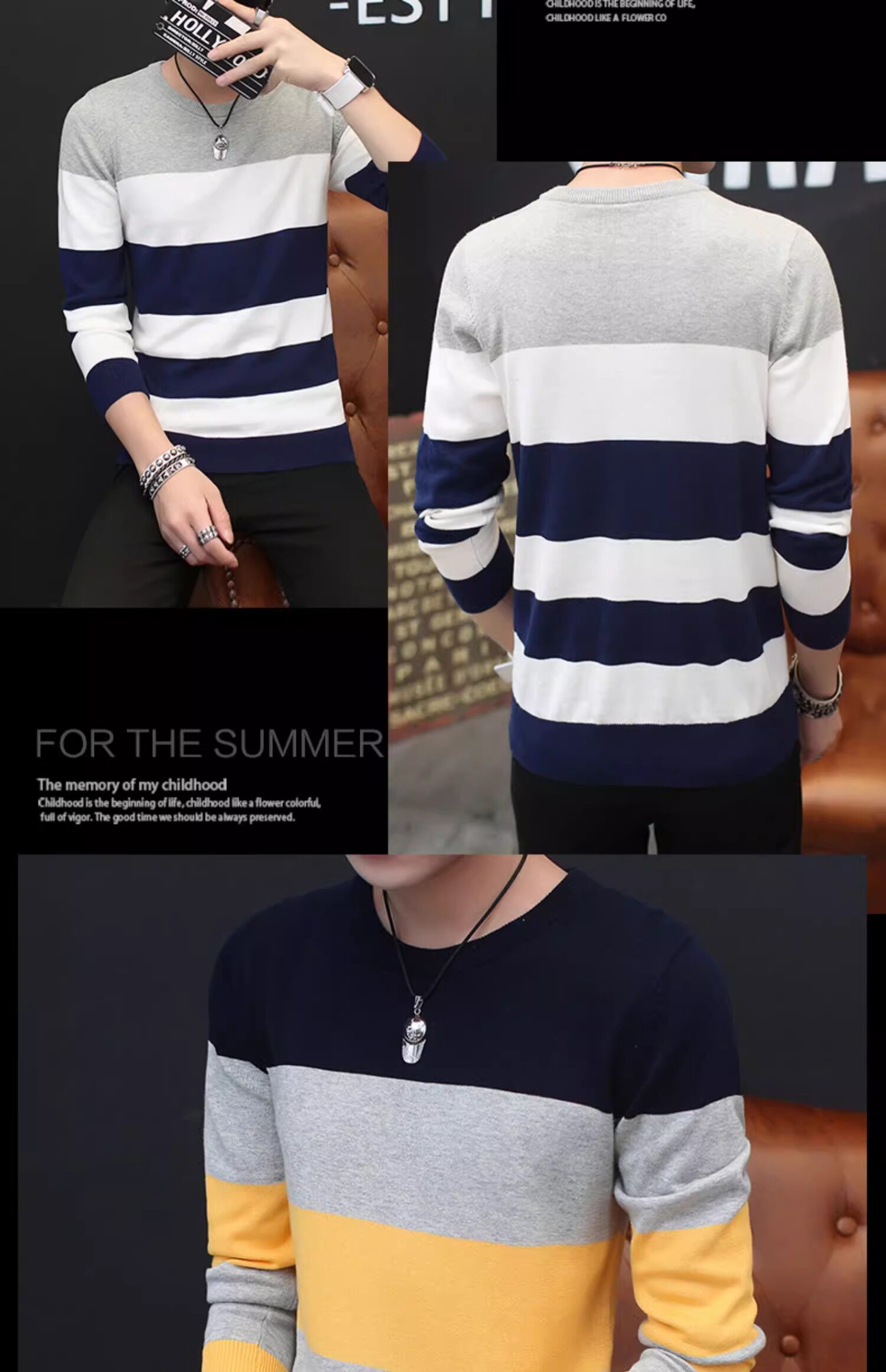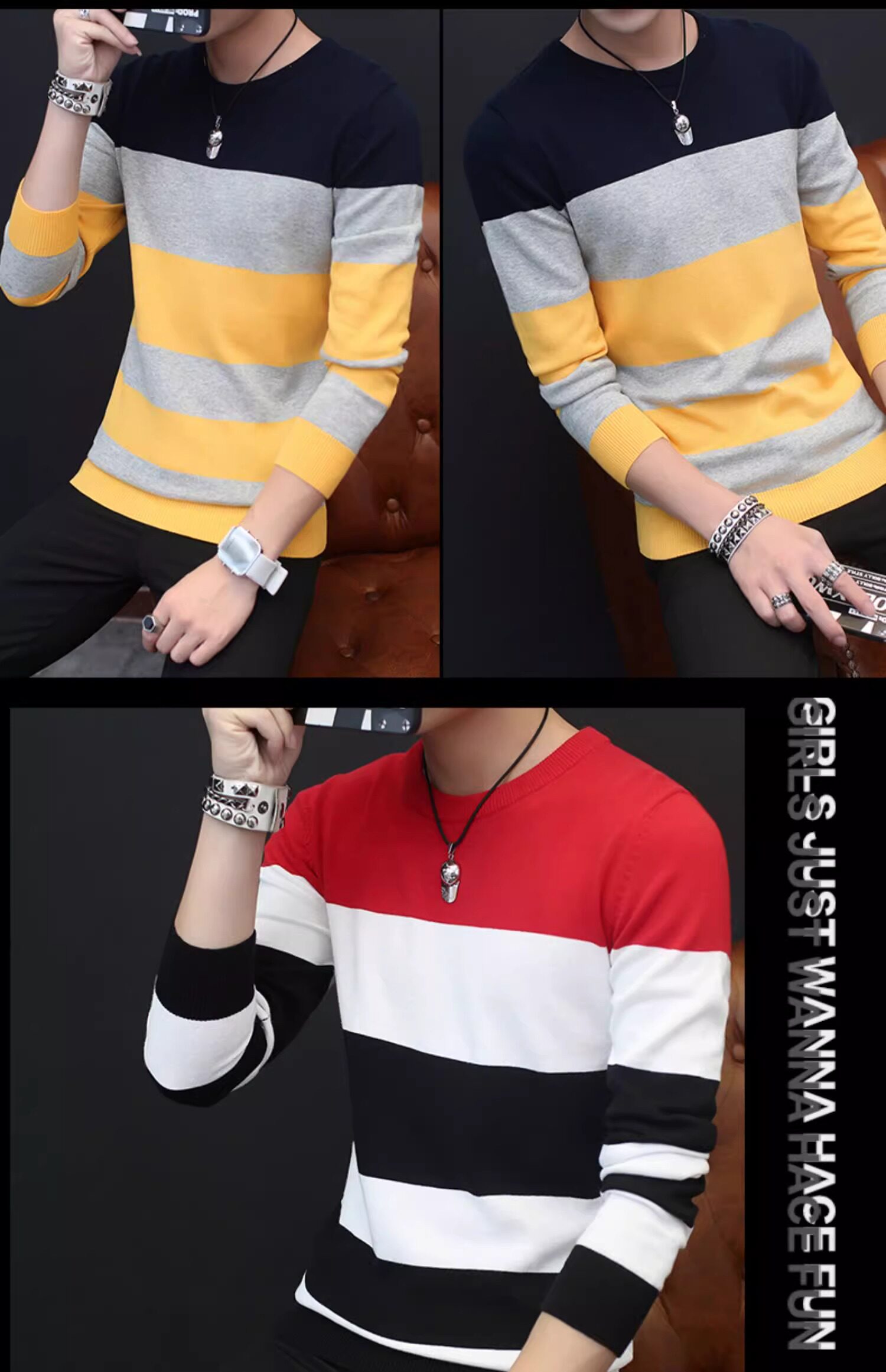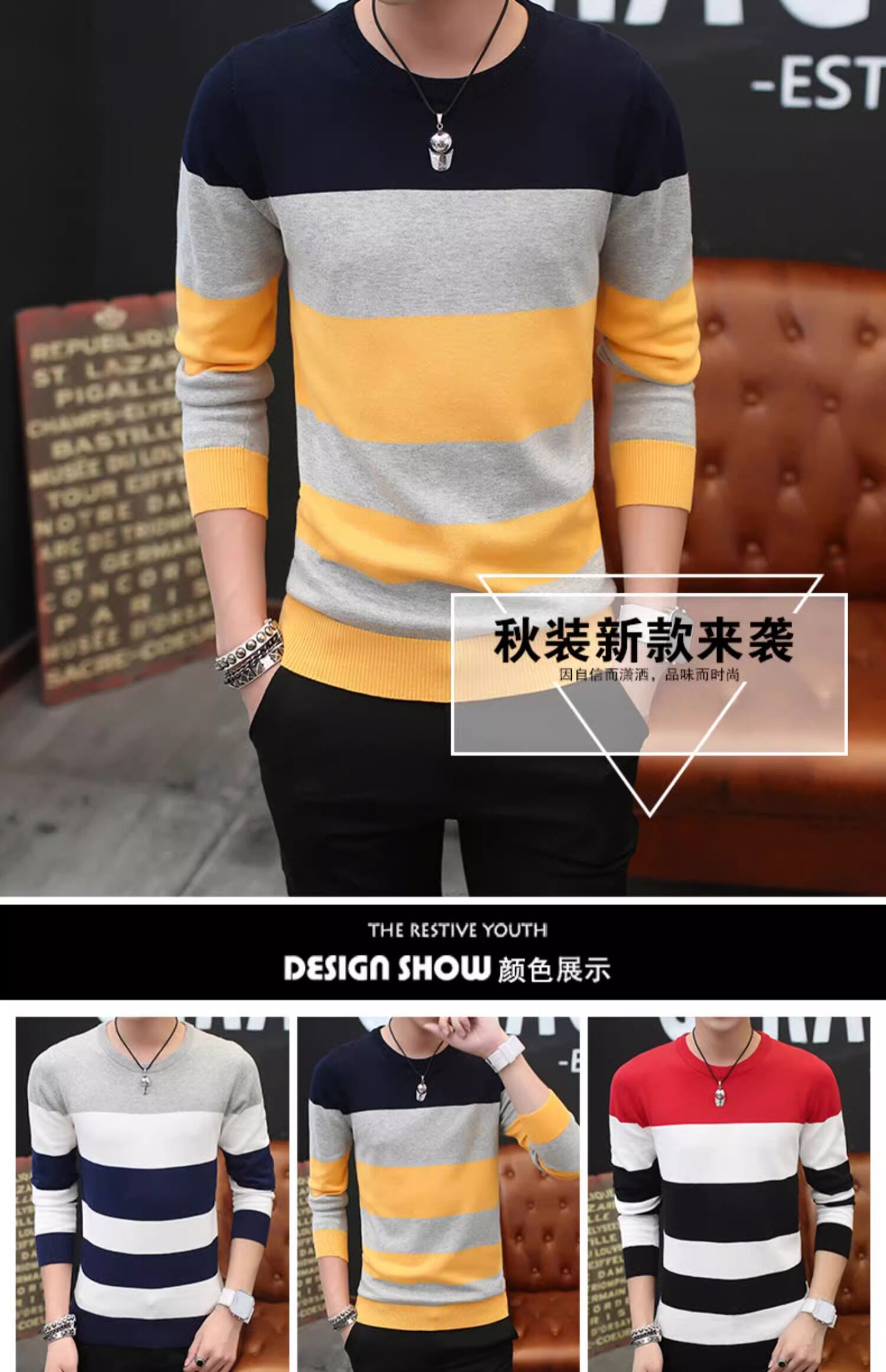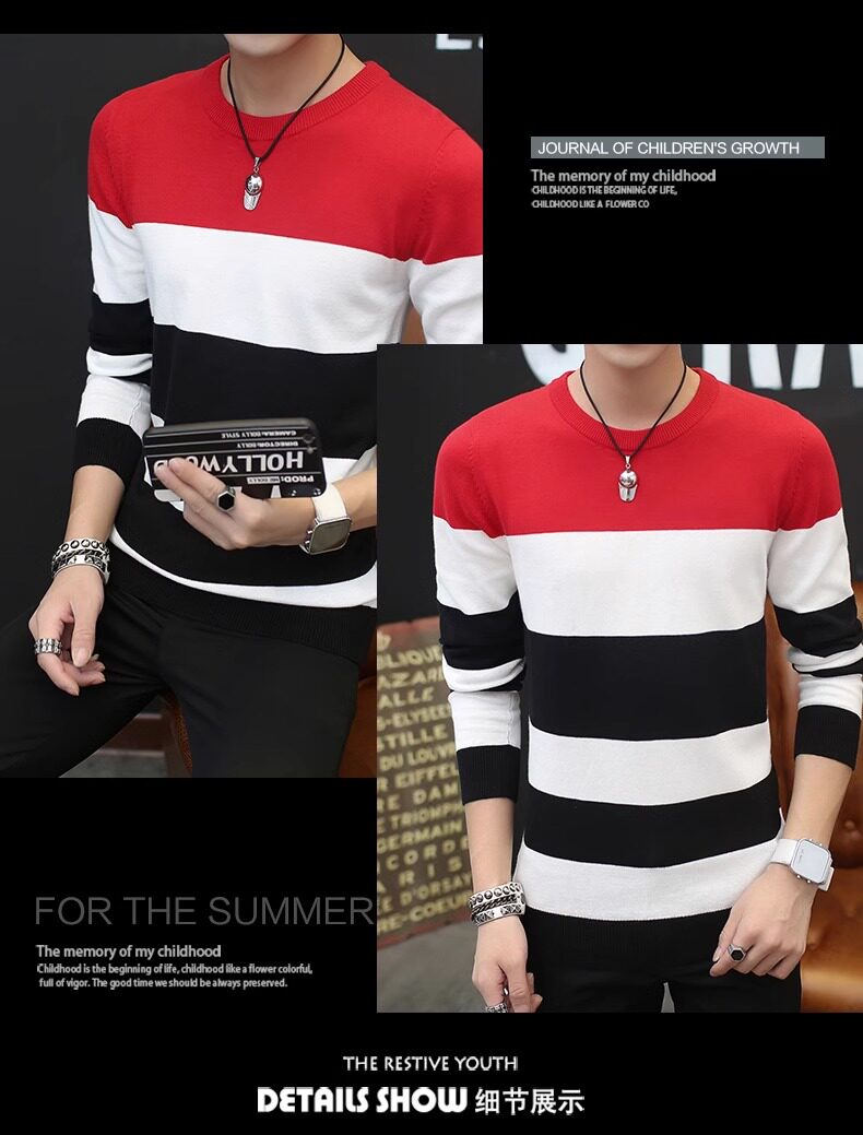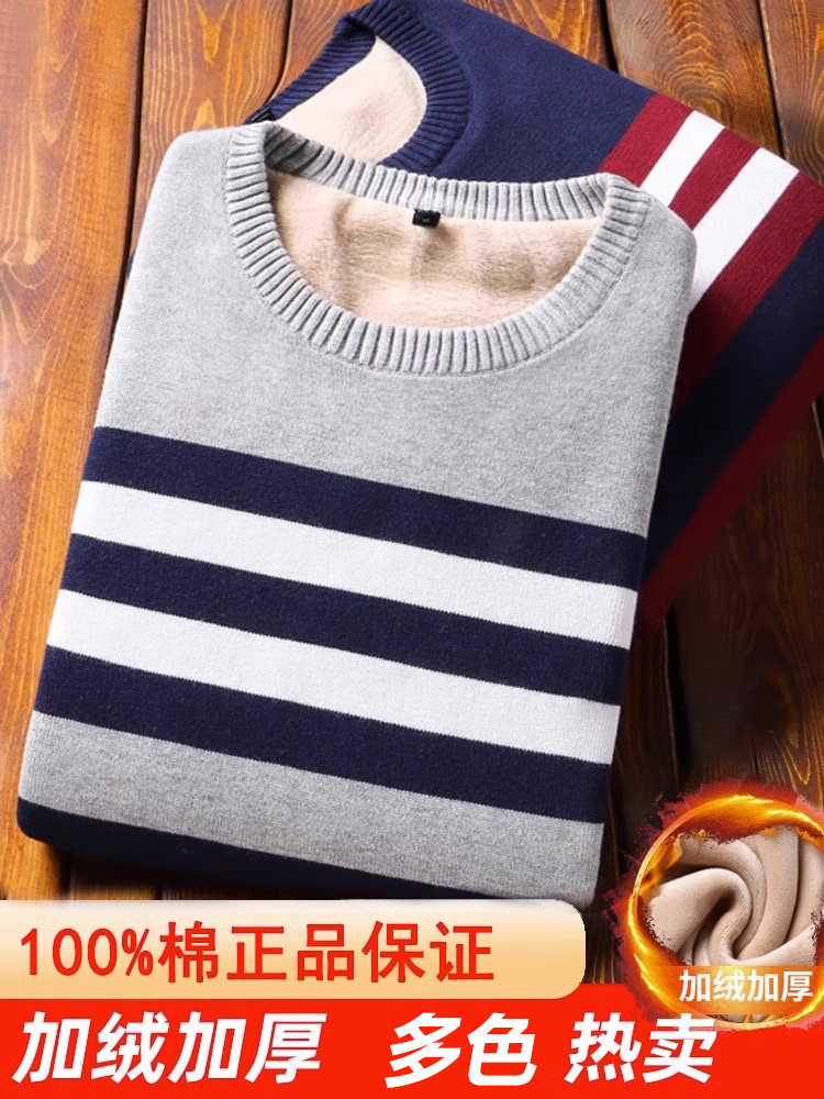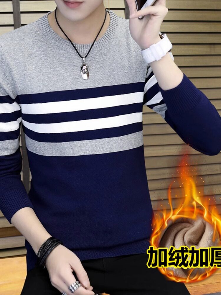 Мужской демисезонный трендовый брендовый утепленный хлопковый трикотажный свитер с круглым воротником