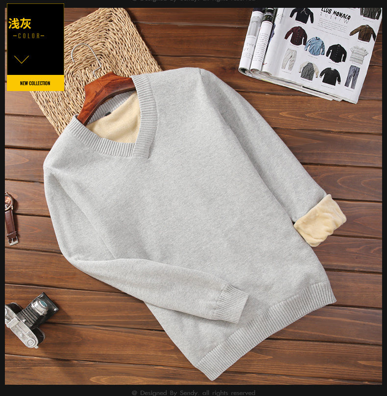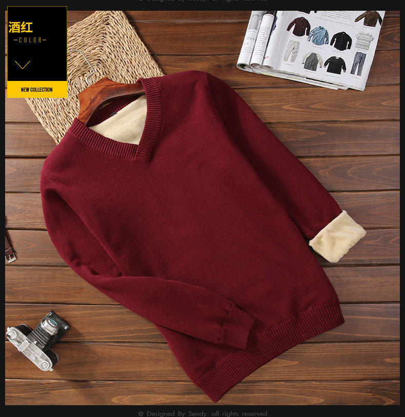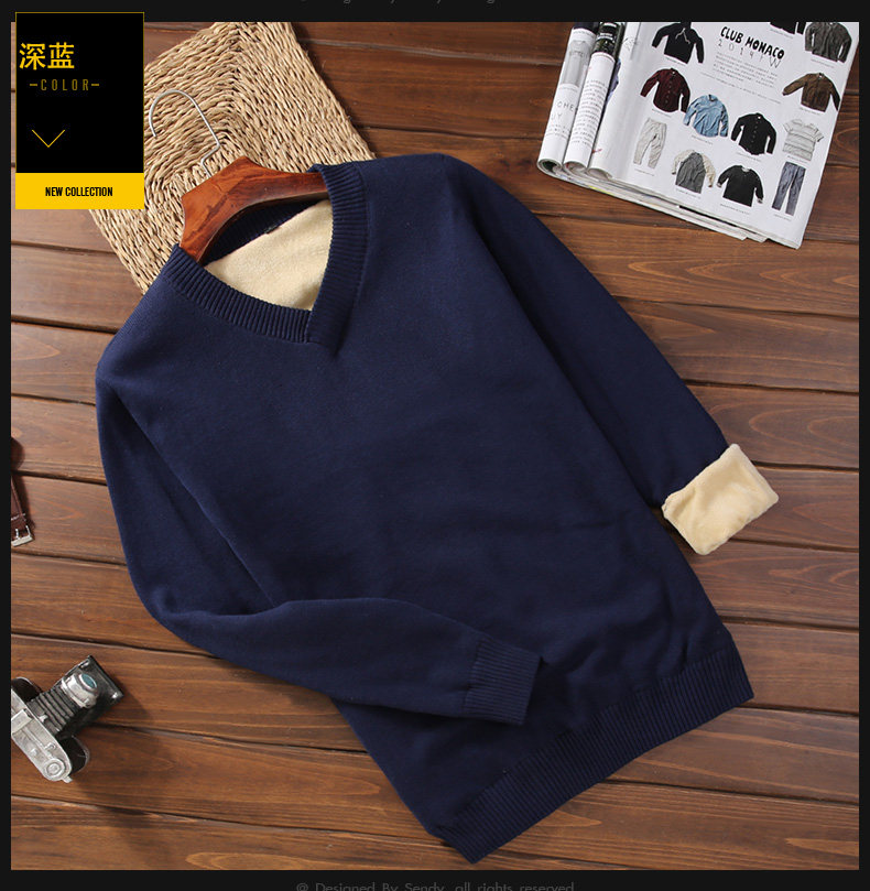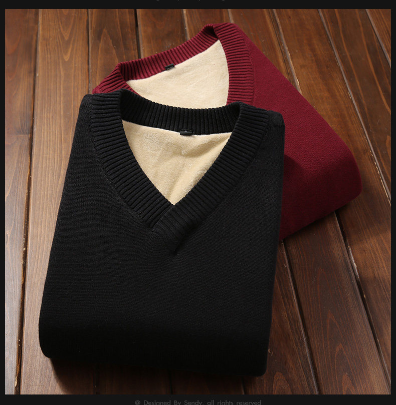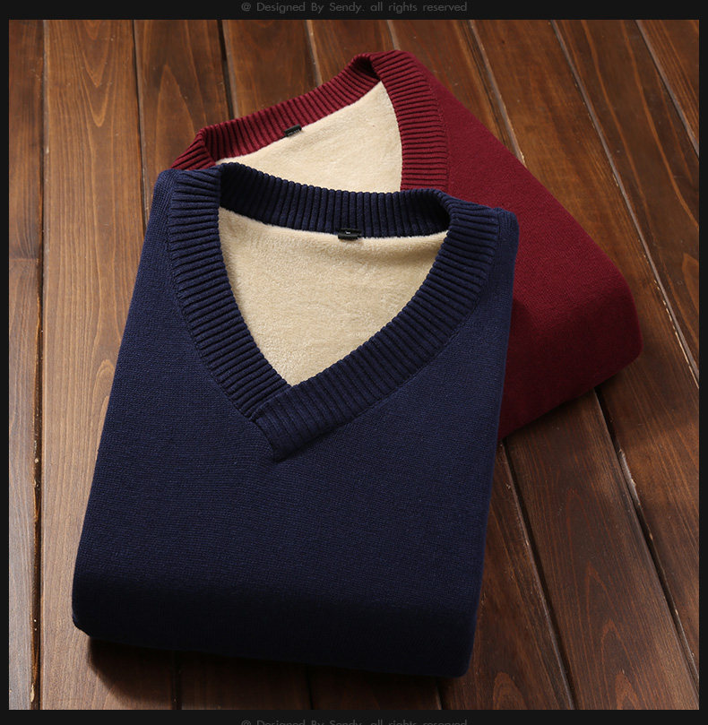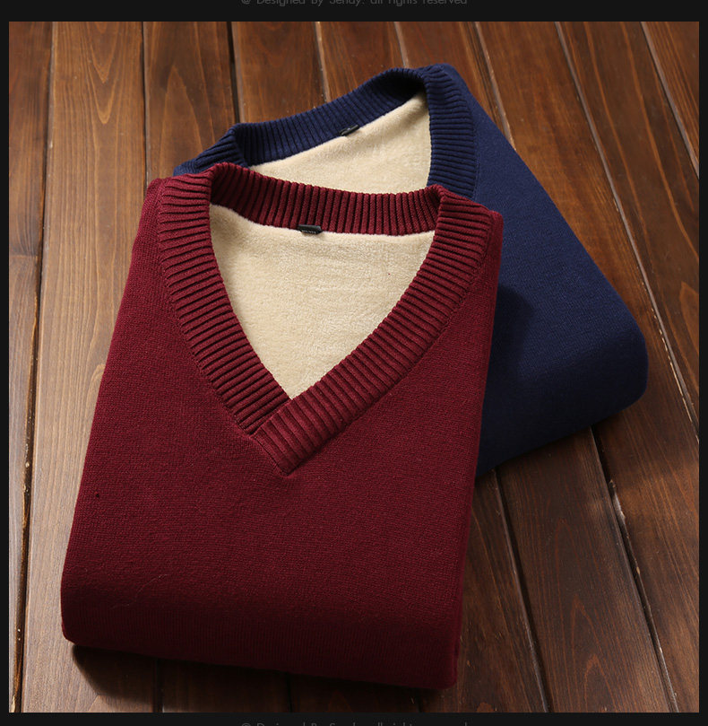 Мужской демисезонный утепленный приталенный свитер, кашемировое трикотажное трендовое брендовое термобелье, V-образный вырез