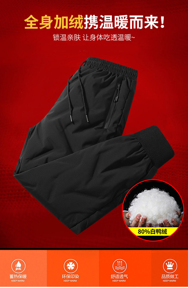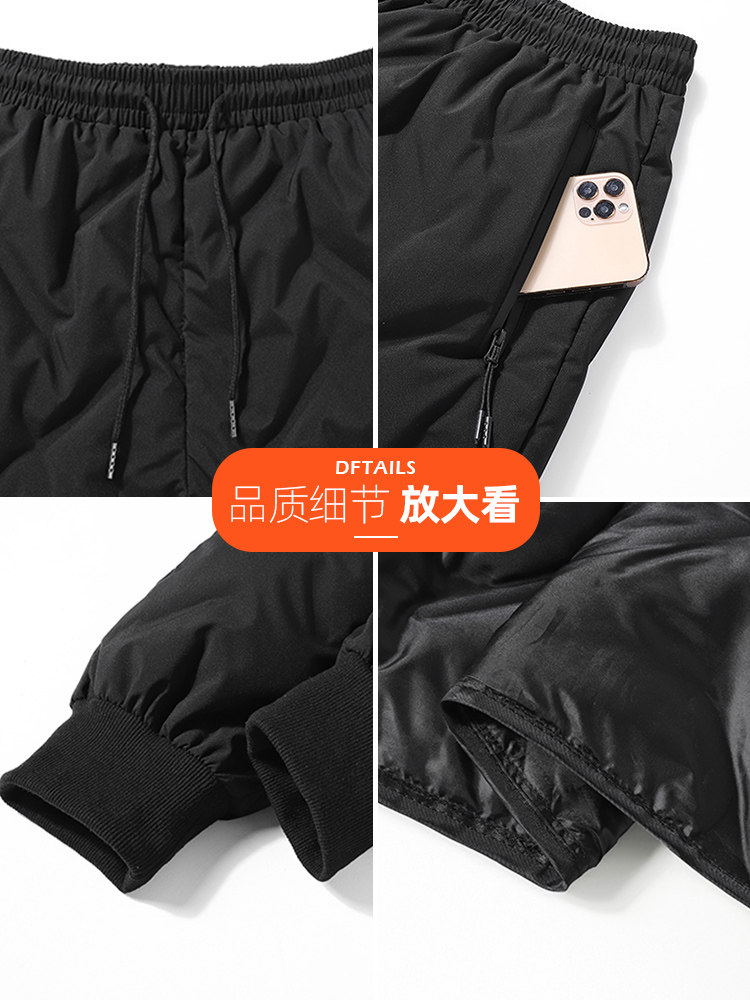 Мужские бархатные зимние дорожные утепленные трендовые штаны с пухом для отдыха, утиный пух, оверсайз